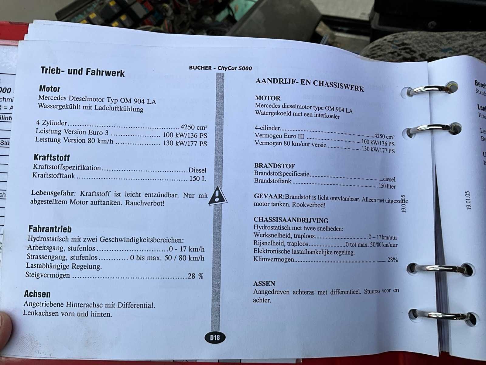 Voor onderdelen Merk: Bucher Type: Citycat 5000 Brandstofmotor aangedreven: true Brandstof: Diesel Merk motor: Mercedes Aantal cilinders: 4