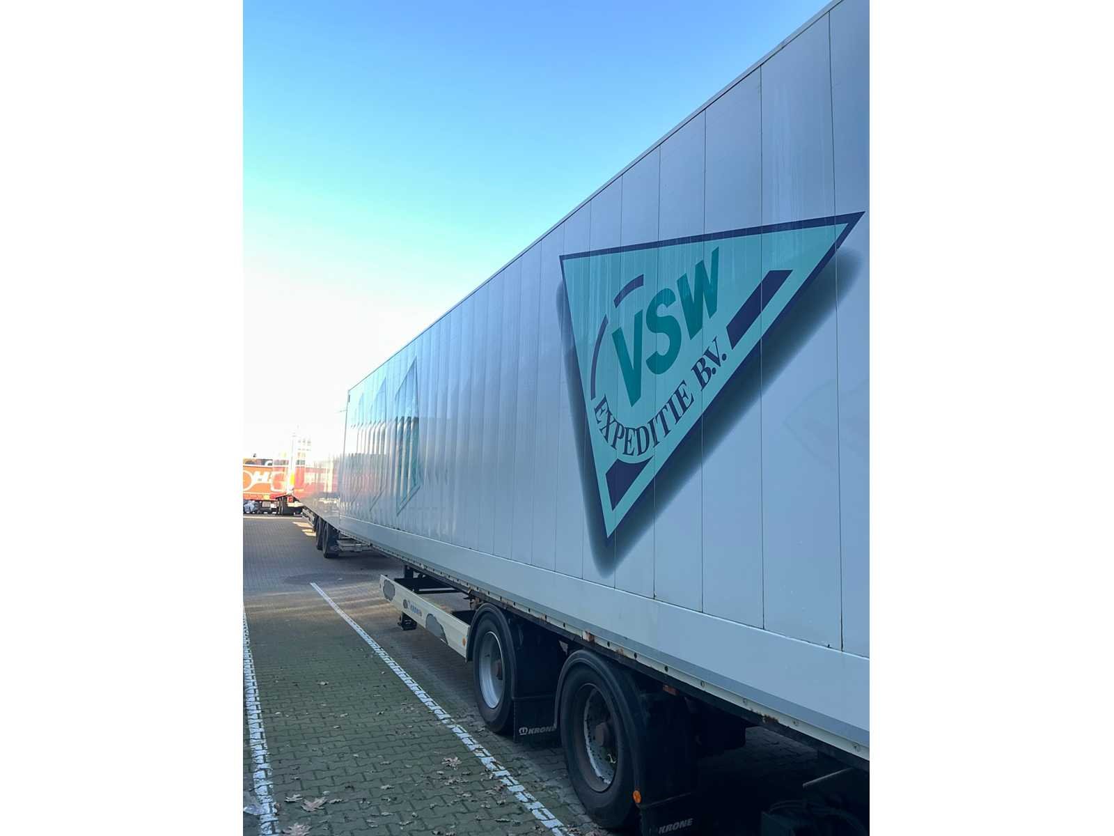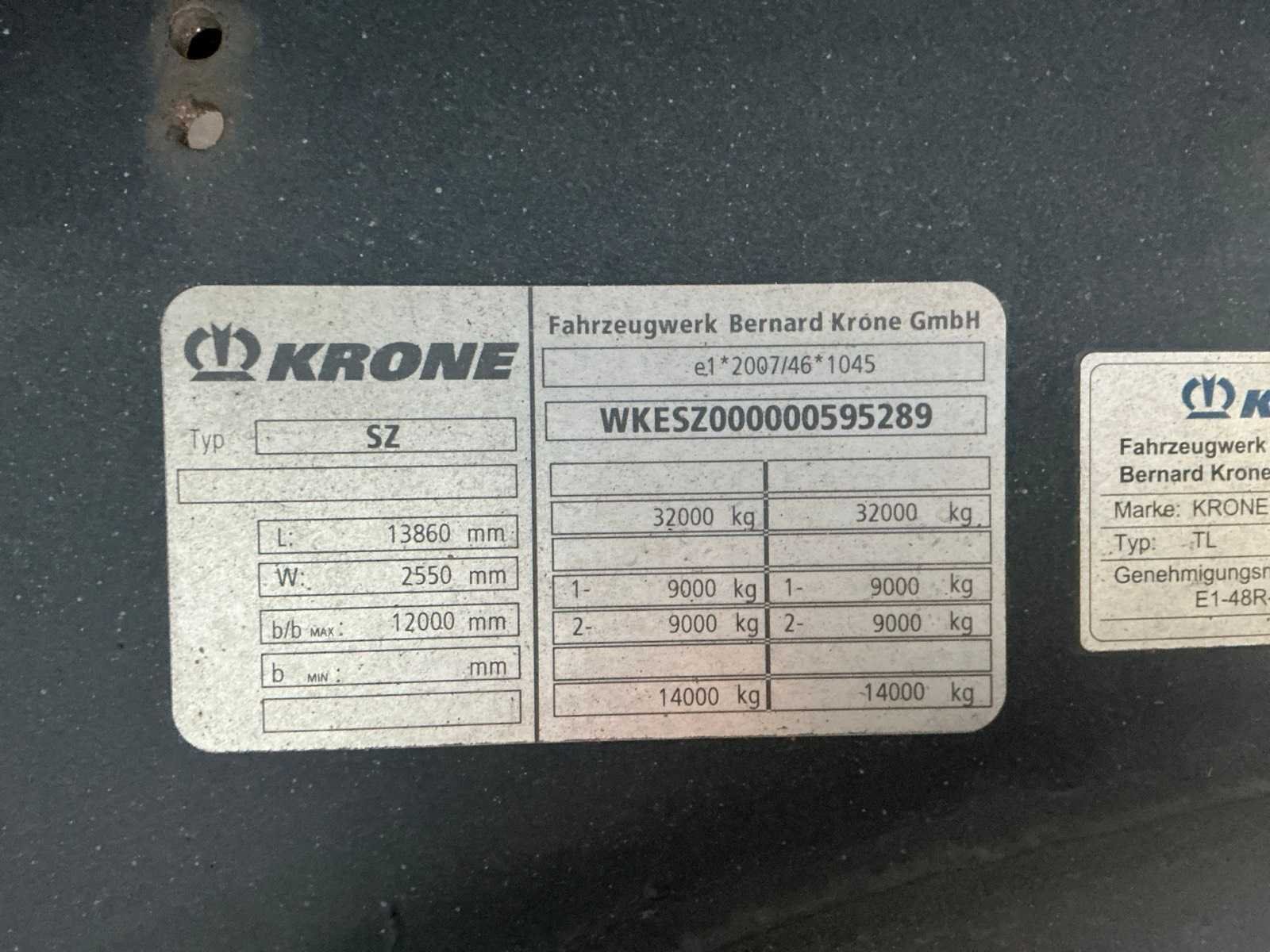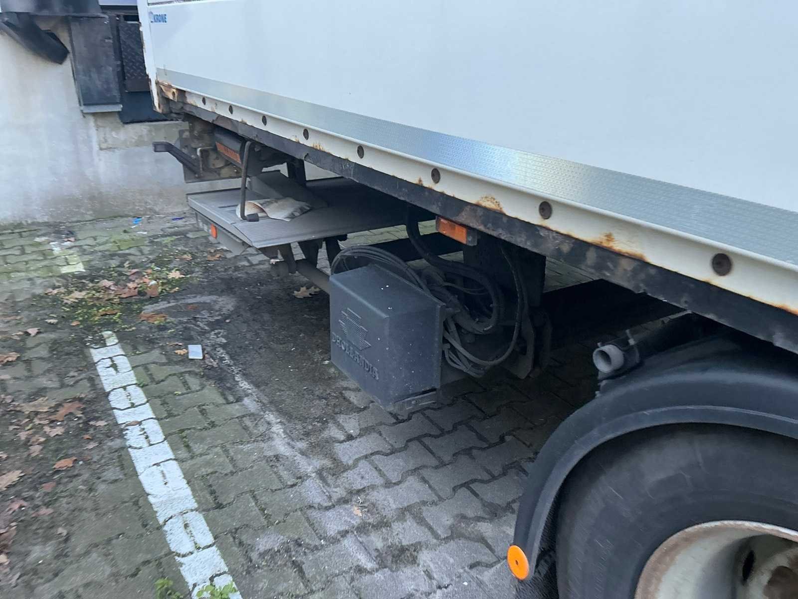 Max massa 32000kg, afstand hart koppeling tot achterzijde 1200cm, lengte 1386cm, breedte 255cm, wielbasis 891cm., Voorzien van Heiwo opbouw, Luchtgeveerde PBW assen waarvan as2 gedwongen gestuurd, Dhollandia DHSMR20 ondervouw laadklep, bandenmaat 385/55R22.5 Merk: Krone Type: SZ DA03LF Bouwjaar: 2013 Chassisnummer VIN: WKESZ000000595289 Kenteken: ON-20-DS Datum eerste toelating (NL): 2013-12-02 Datum eerste toelating: 2013-12-02 APK vervaldatum: 2026-01-16 Aantal assen: 2 Laadvermogen: 23500kg Hydraulische laadklep: true Eigen gewicht: 8500kg Zelf rijdend exporteren: Niet mogelijk
