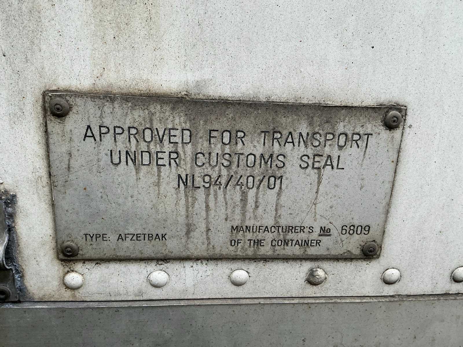 Voorzien van twistlocks, steunpoten, afmeting circa 7,45x2,55meter Merk: Talson Type: Afzetbak Serienummer: 6809