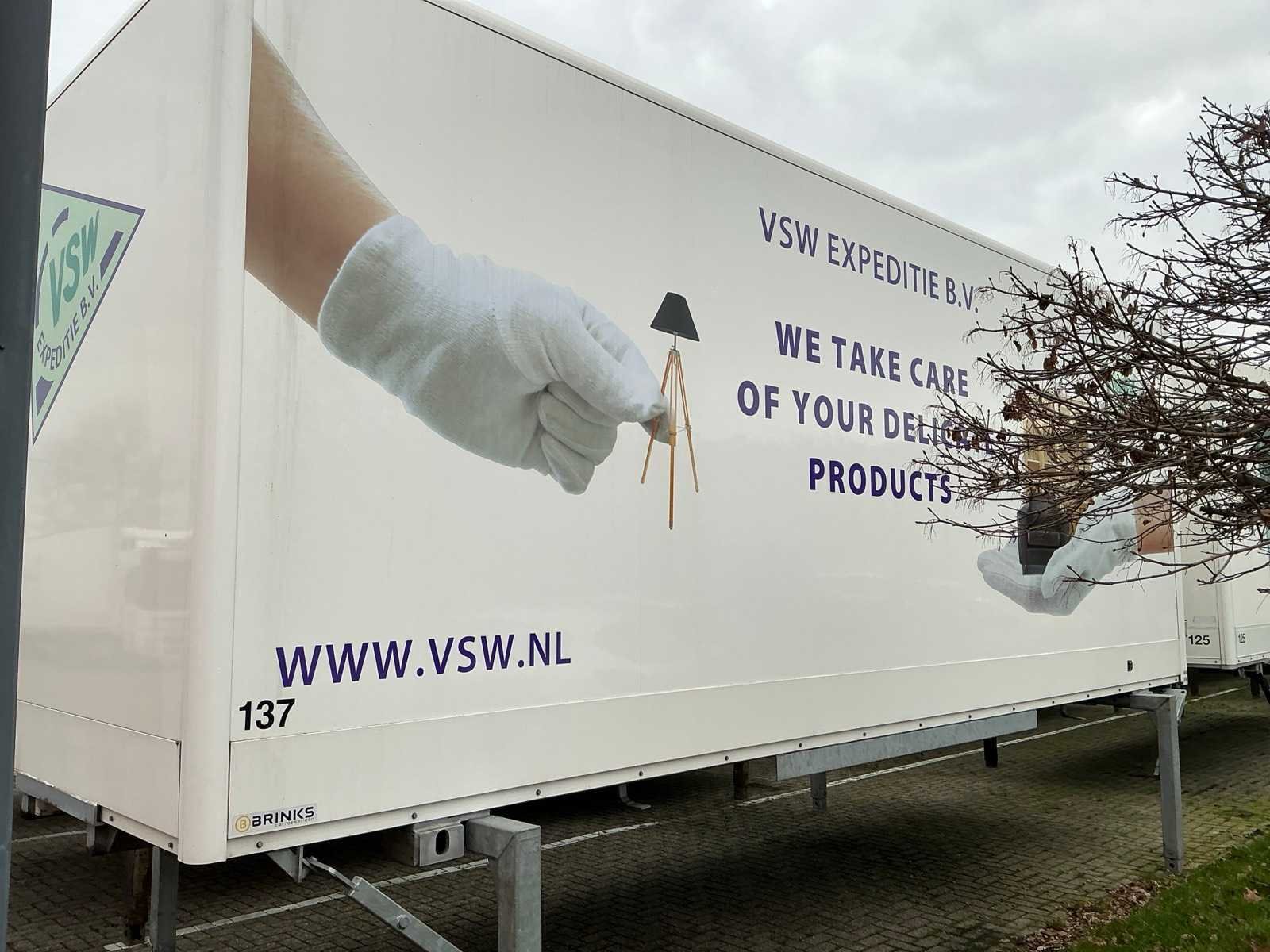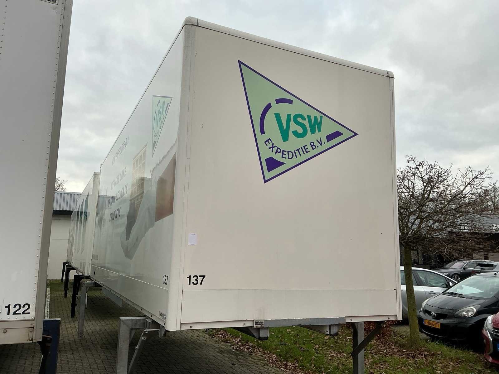 Voorzien van twistlocks, steunpoten, afmeting circa 7,45x2,55meter Merk: Brinks