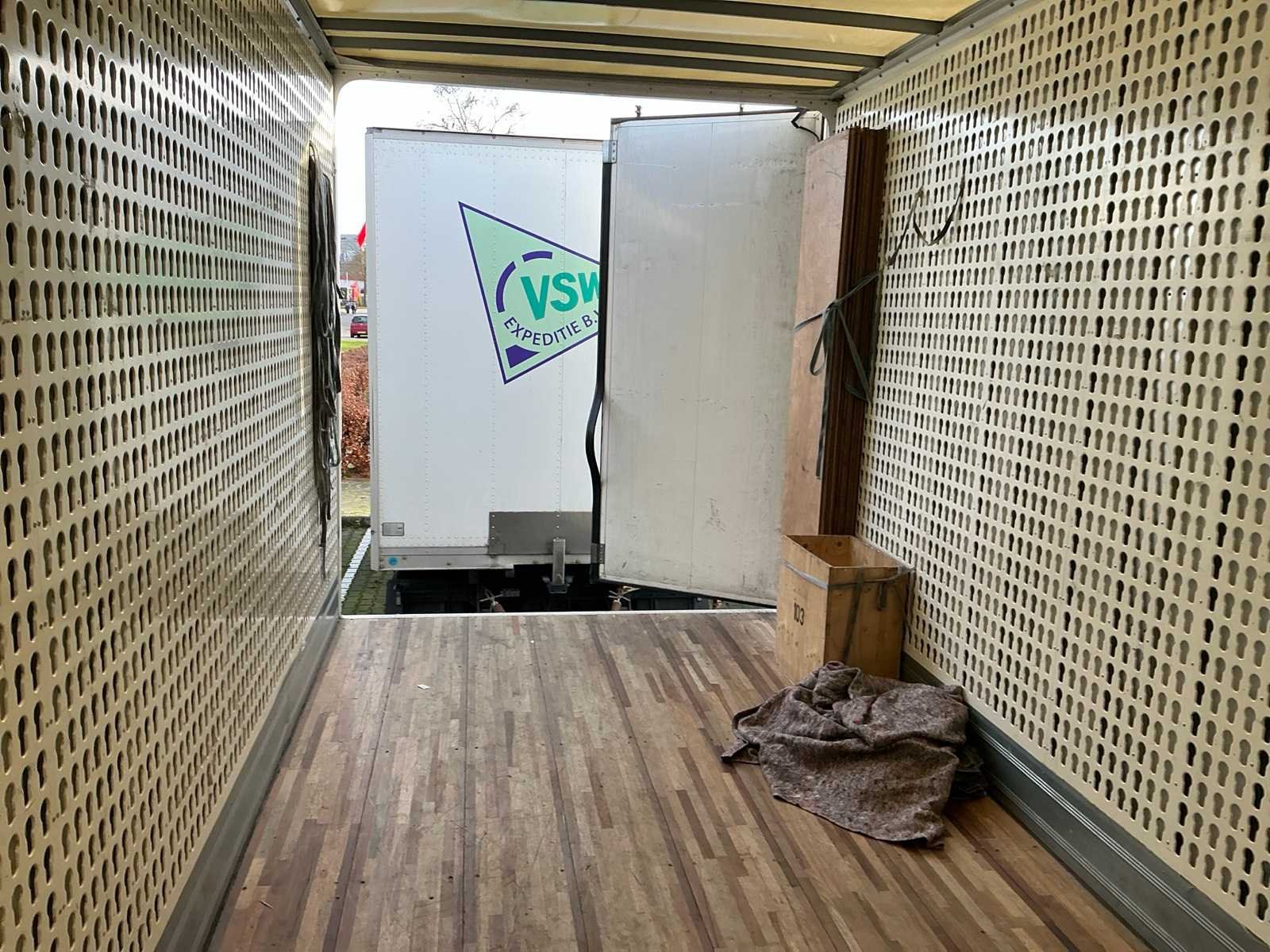 Voorzien van twistlocks, steunpoten, afmeting circa 7,45x2,55meter
