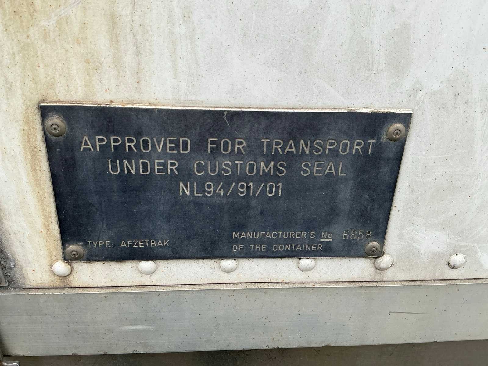 Voorzien van twistlocks, steunpoten, afmeting circa 7,45x2,55meter Merk: Talson Type: Afzetbak Serienummer: 6859