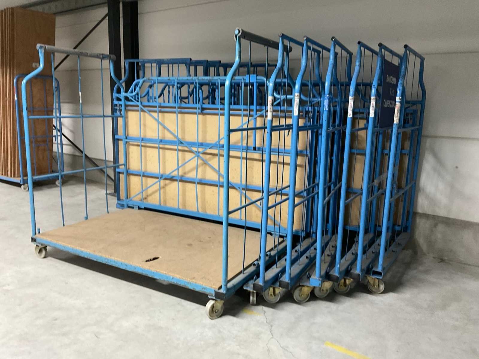 Bodem hout, Stapelbaar, Nestbaar. Voorzien van: zwenkwielen. Type: L-frame Laadvermogen: 600kg Eigen gewicht: 85kg Totale afmeting L: 2000mm Totale afmeting Breedte: 1150mm Totale afmeting Hoogte: 1840mm