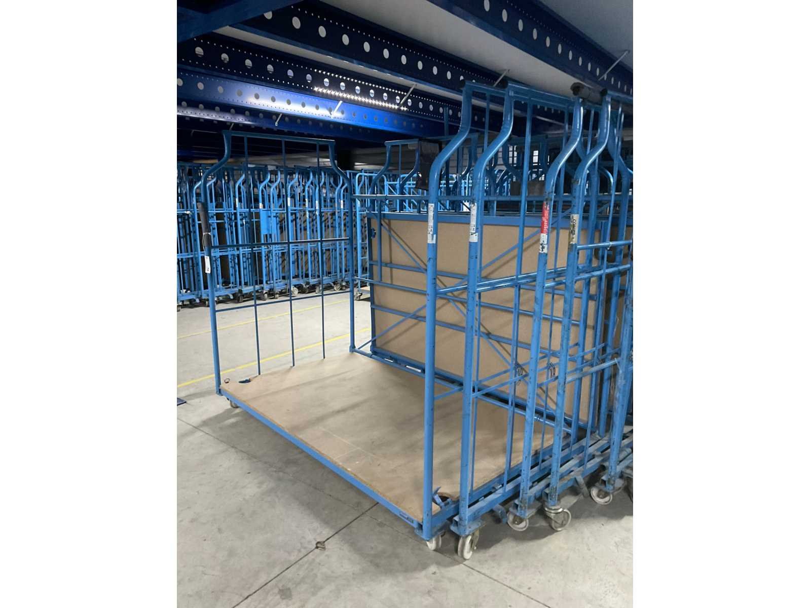 Bodem hout, Stapelbaar, Nestbaar. Voorzien van: zwenkwielen, plaatwerk. Type: L-frame Laadvermogen: 600kg Totale afmeting L: 1880mm Totale afmeting Breedte: 1130mm Totale afmeting Hoogte: 1800mm