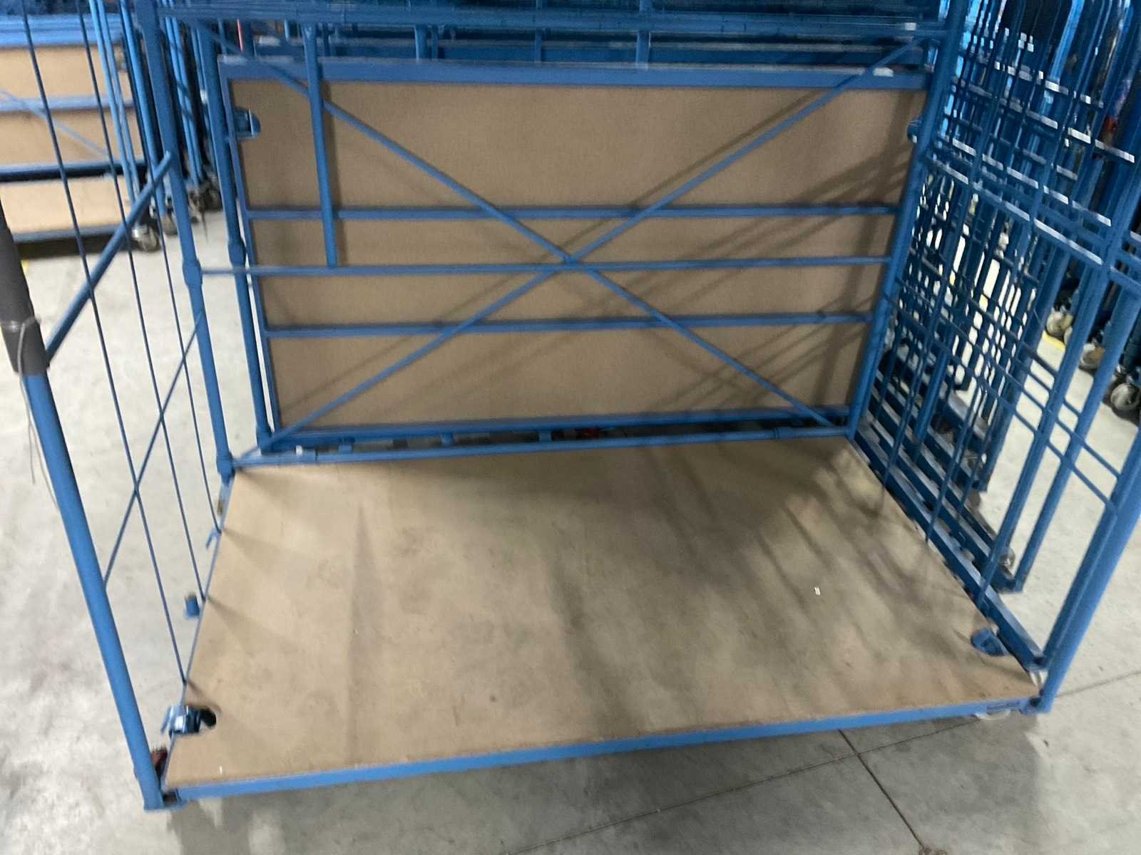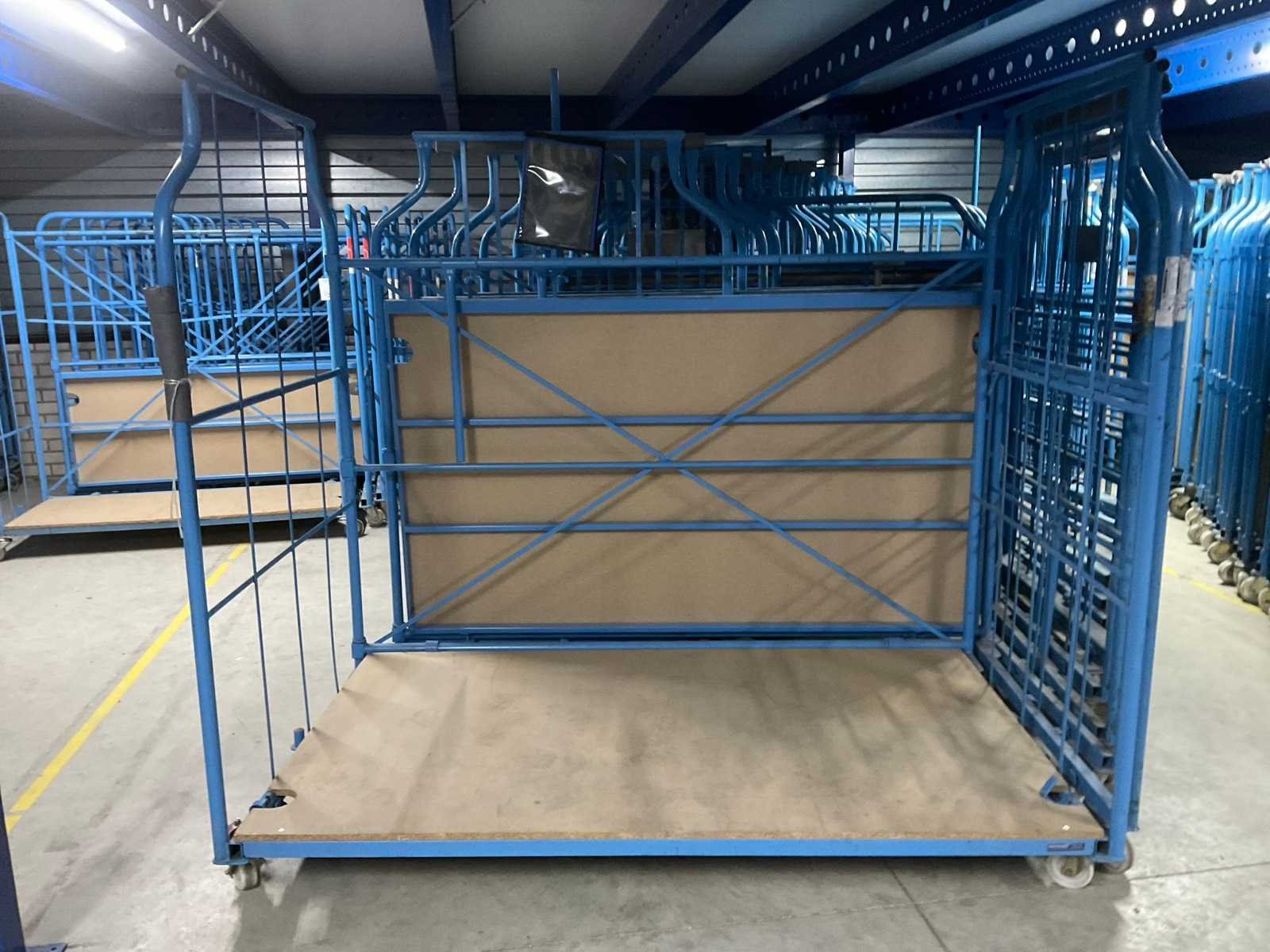 Bodem hout, Stapelbaar, Nestbaar. Voorzien van: zwenkwielen, plaatwerk. Type: L-frame Laadvermogen: 600kg Totale afmeting L: 1880mm Totale afmeting Breedte: 1130mm Totale afmeting Hoogte: 1800mm