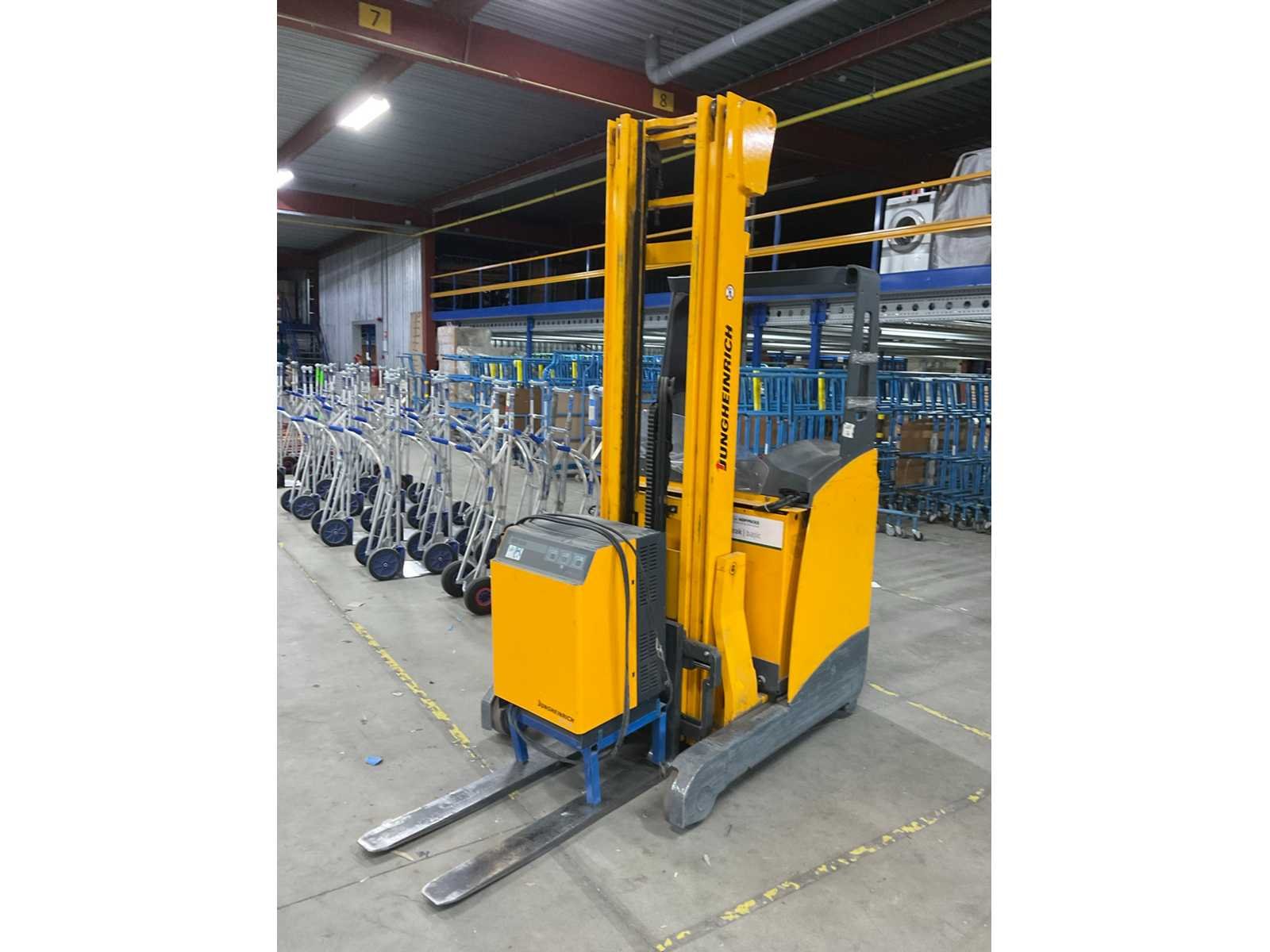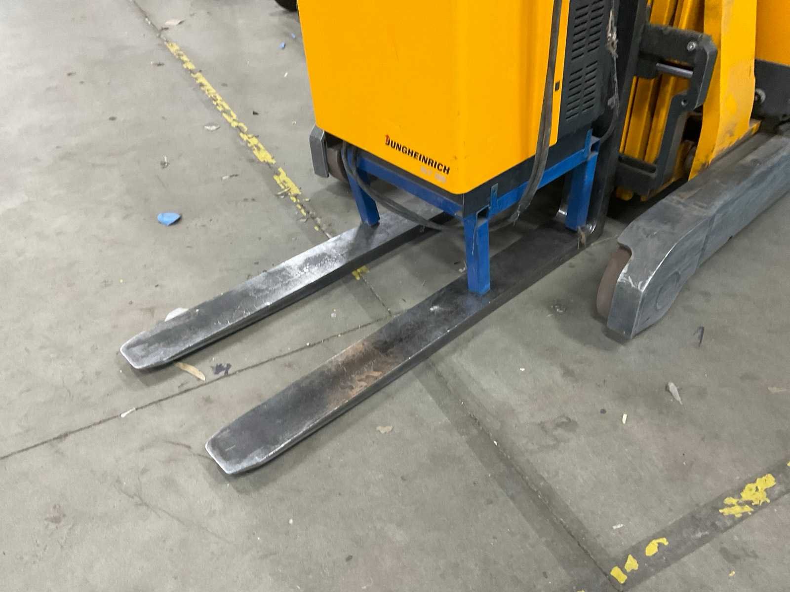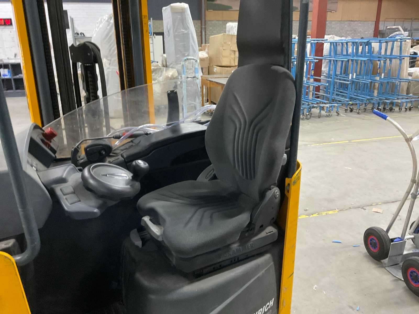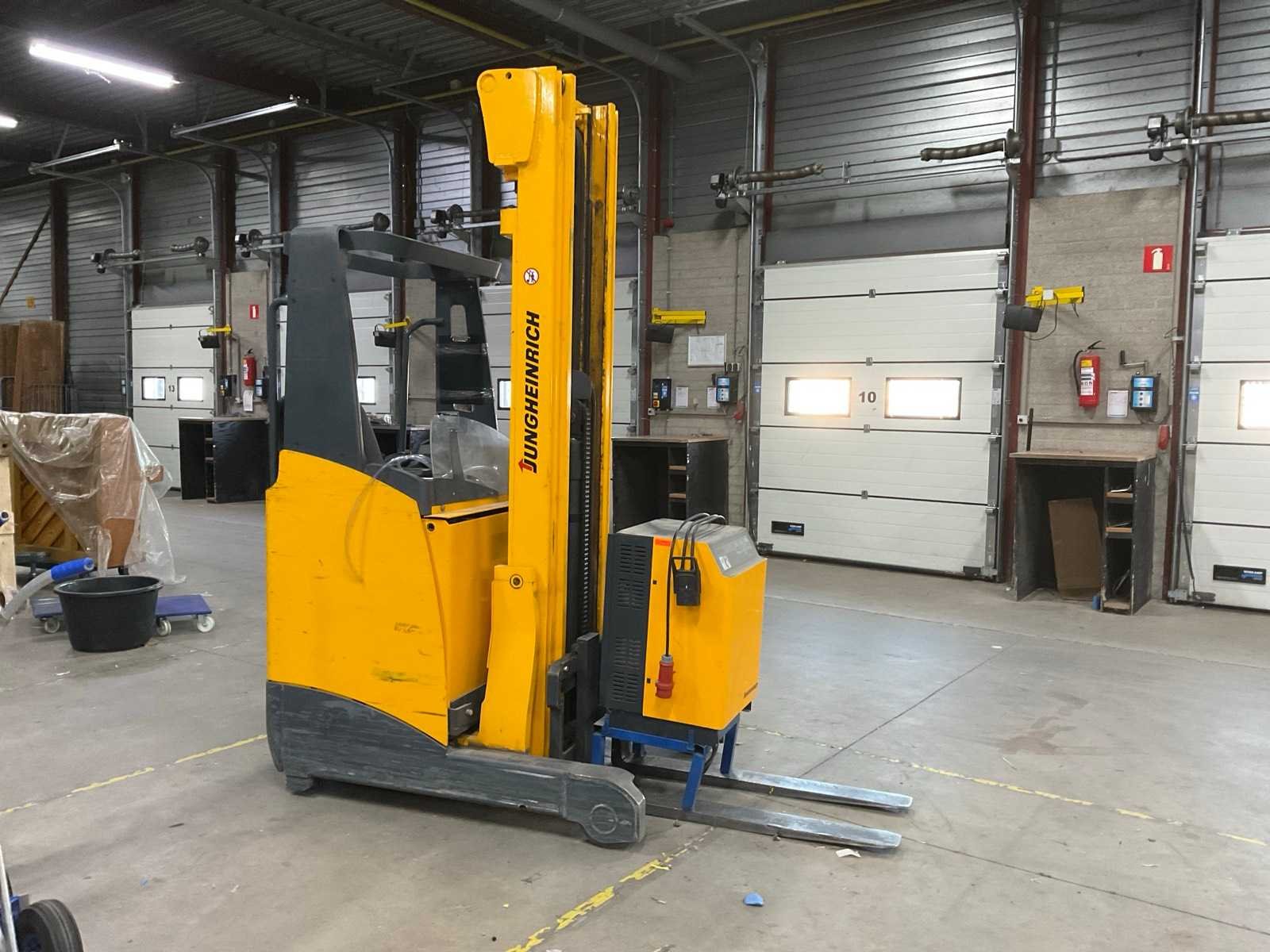Let op! Deze reachtruck heeft een defect wiel en een elektrische storing. Merk: Jungheinrich Type: ETV110 Bouwjaar: 2006 Serienummer: 91034904 Brandstof: Elektrisch Aantal wielen: 4 Afgelezen urenstand: 3642 Accu lader: true Triple mast: true Eigen gewicht: 2560kg Hefvermogen: 1000kg Lepellengte: 1140mm Max. hefhoogte: 6000mm Minimale doorrijhoogte: 2700mm Totale afmeting L: 1600mm Totale afmeting Breedte: 1100mm Totale afmeting Hoogte: 2700mm Elektrisch: true Vol rubber banden: true