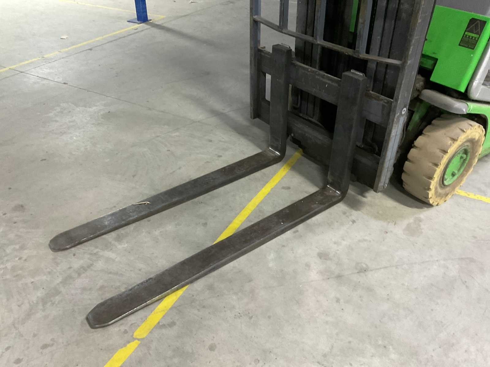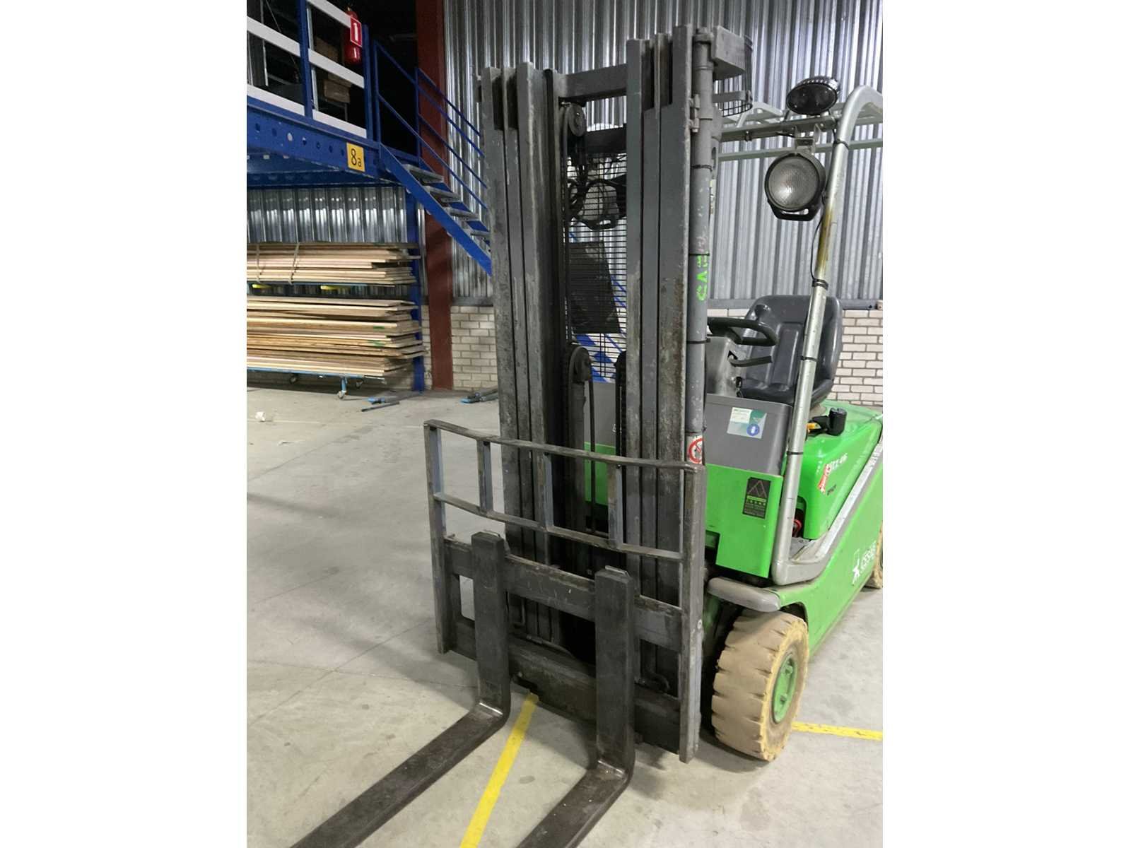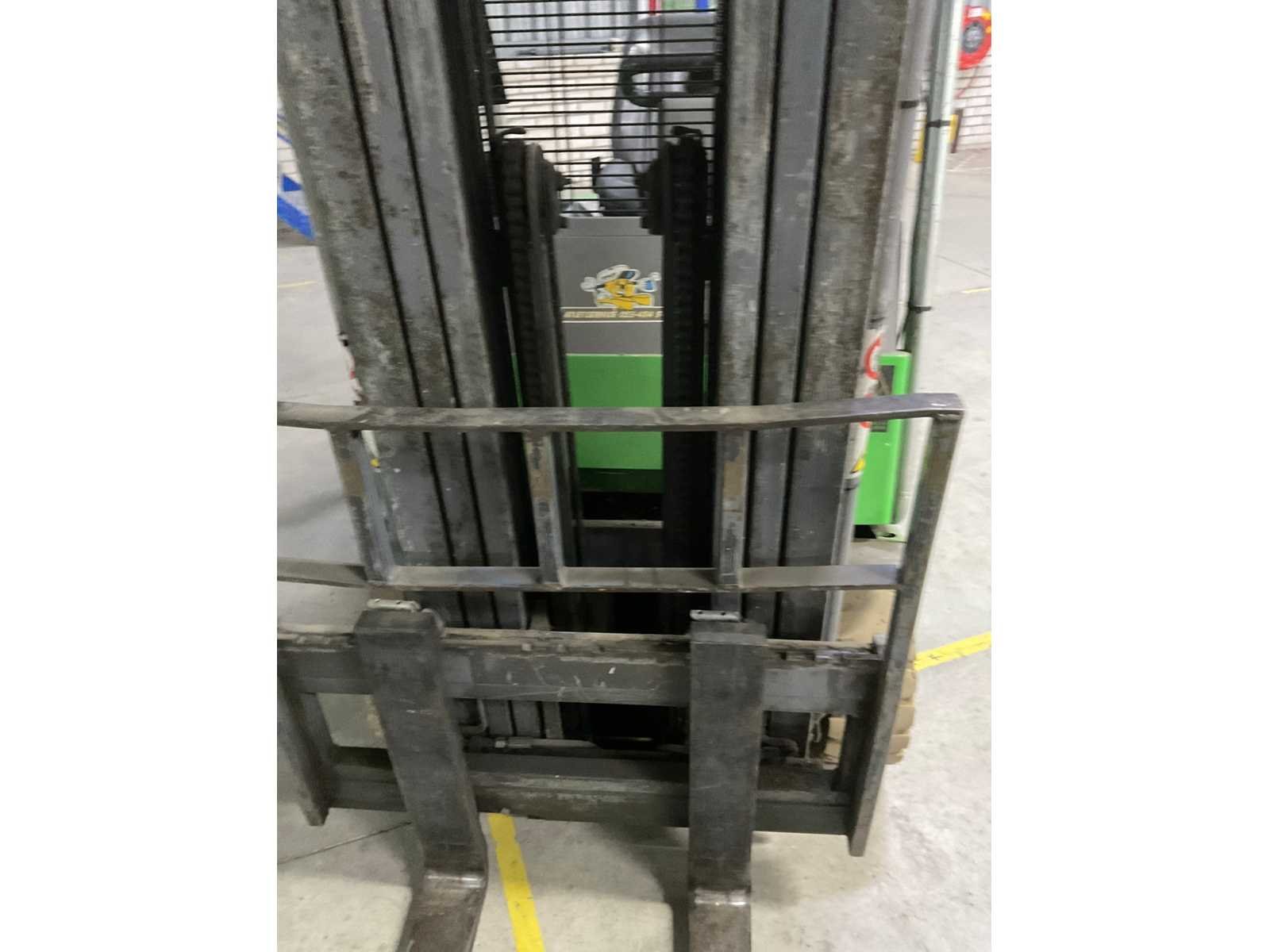 Merk: Cesab Type: Blitz 416 Bouwjaar: 1997 Serienummer: 161181 Brandstof: Elektrisch Aantal wielen: 4 Afgelezen urenstand: 4460 Free-lift: true Side-shift: true Triple mast: true Hefvermogen: 1600kg Lepellengte: 122mm Hefhoogte: 4350mm Minimale doorrijhoogte: 1950mm Totale afmeting L: 2100mm Totale afmeting Breedte: 960mm Totale afmeting Hoogte: 1950mm