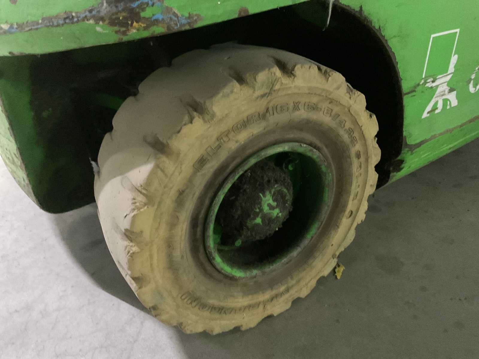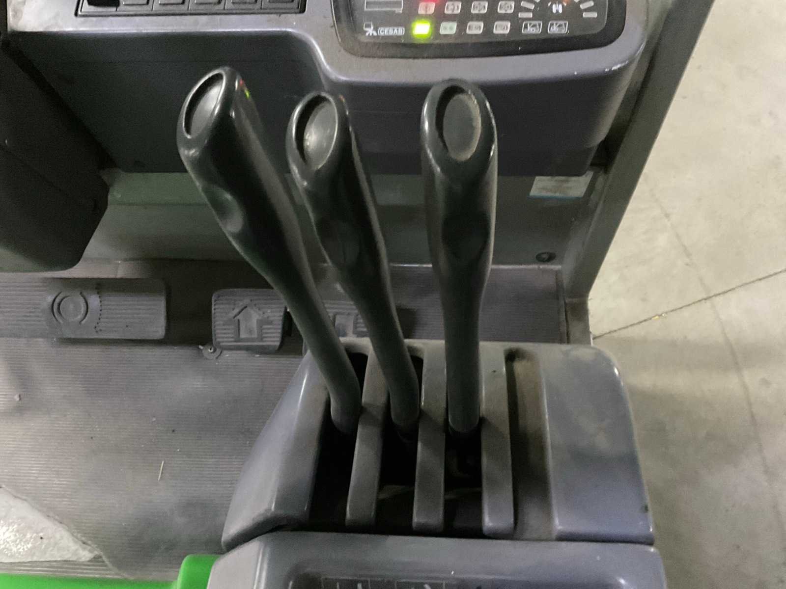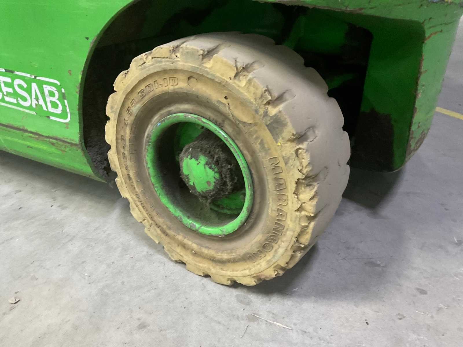 Merk: Cesab Type: Blitz 416 Bouwjaar: 1997 Serienummer: 161181 Brandstof: Elektrisch Aantal wielen: 4 Afgelezen urenstand: 4460 Free-lift: true Side-shift: true Triple mast: true Hefvermogen: 1600kg Lepellengte: 122mm Hefhoogte: 4350mm Minimale doorrijhoogte: 1950mm Totale afmeting L: 2100mm Totale afmeting Breedte: 960mm Totale afmeting Hoogte: 1950mm