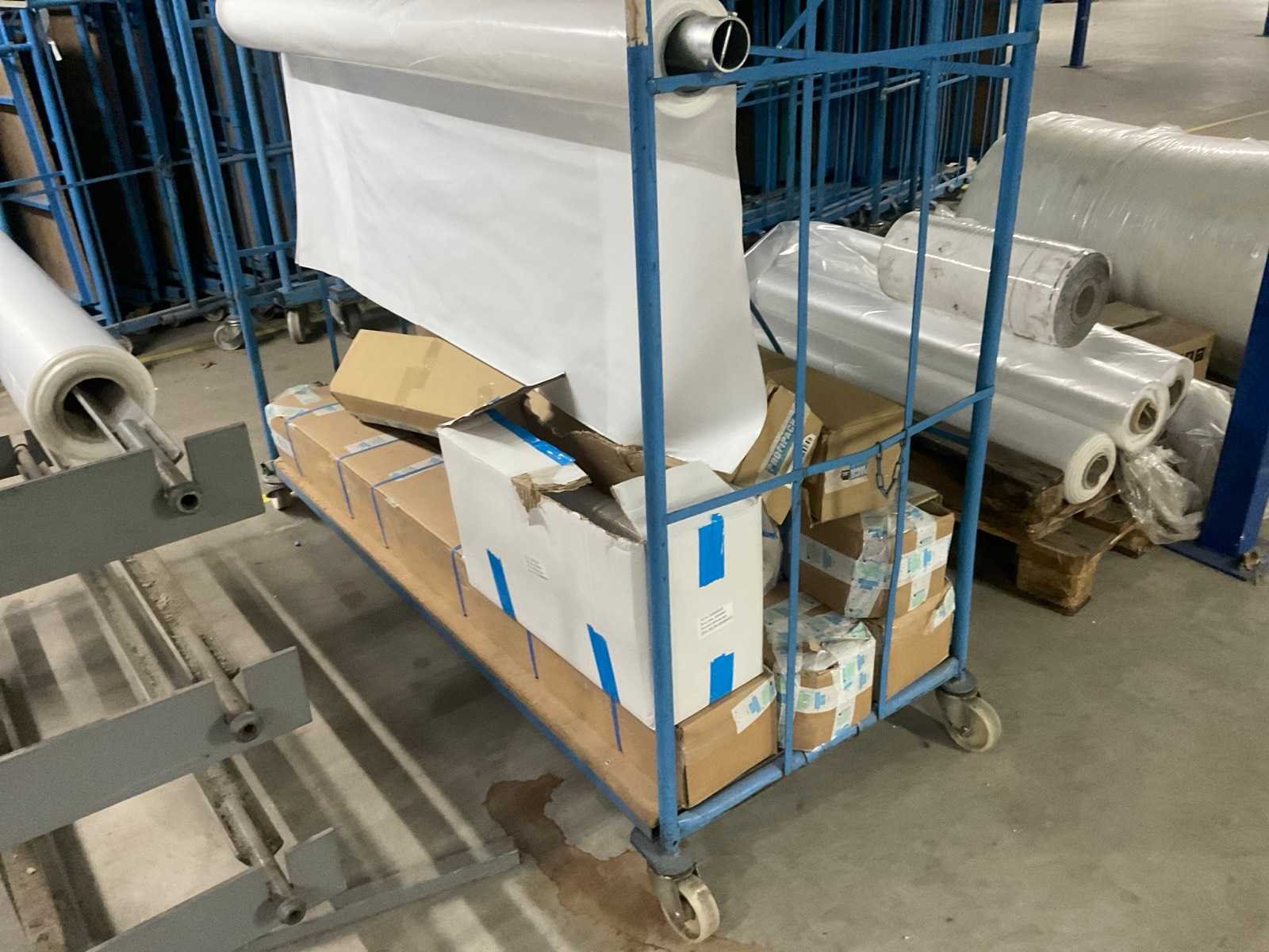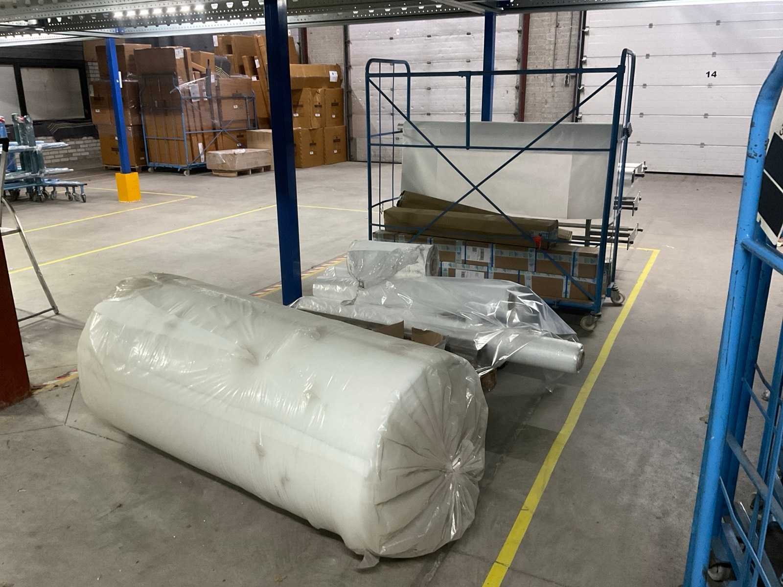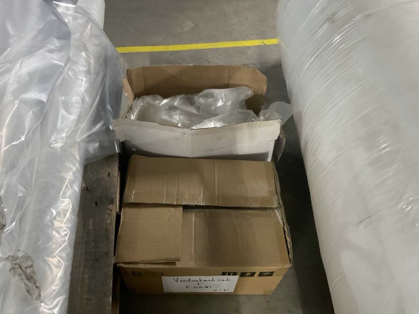 Bestaande uit: frame met rollen folie 1200 mm breed, meubelkar met rollen folie 1200 mm breed, pallet met rollen folie 1200 mm breed, 2x doos zakken, 1x rol foam