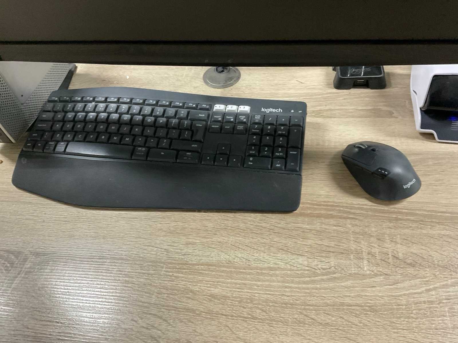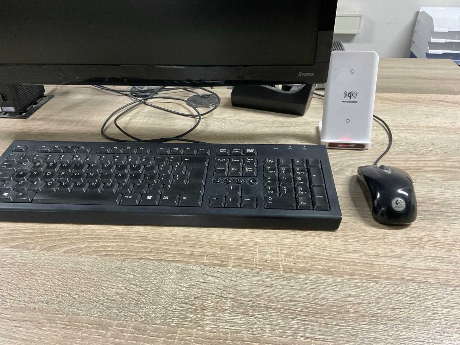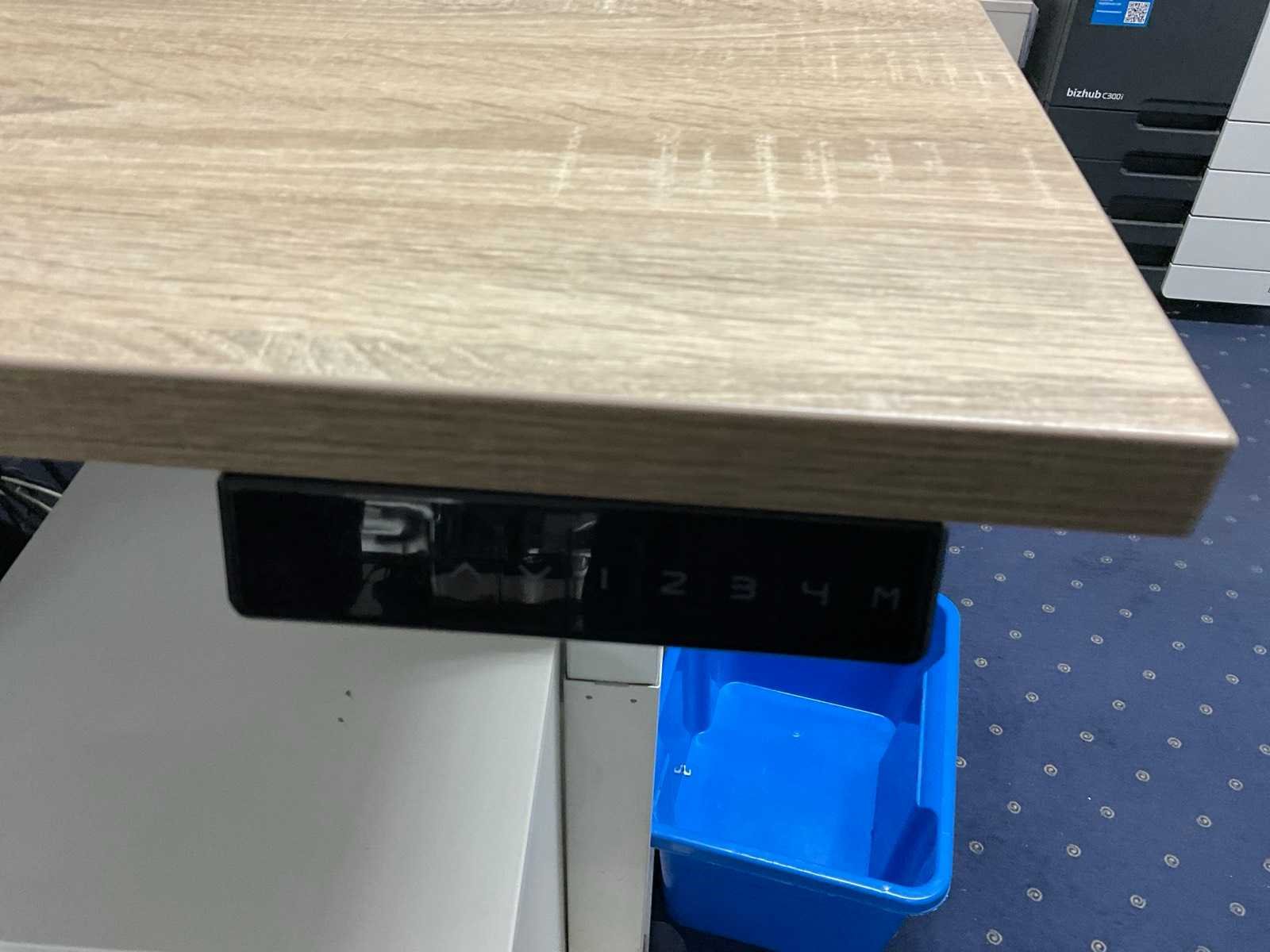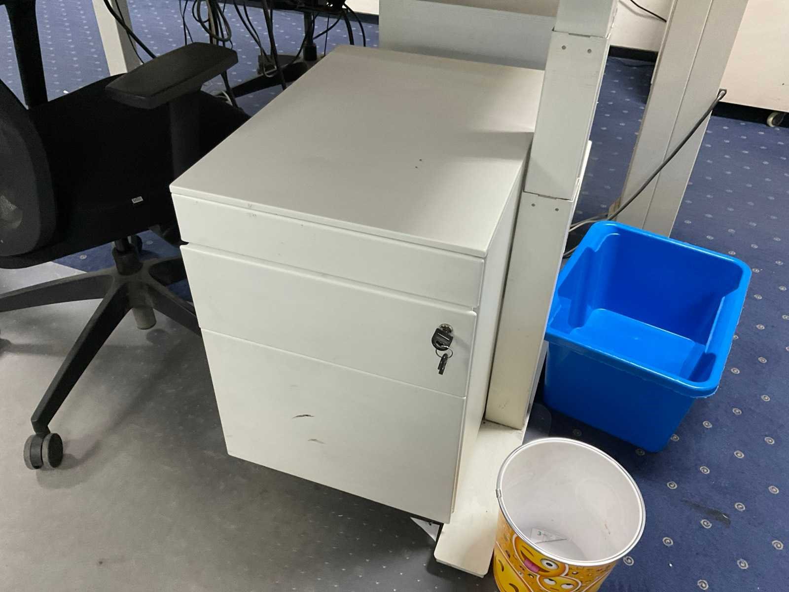 Bestaande uit: (1×) elektrisch in hoogte verstelbaar bureau (180x80 cm) (1×) mobiele bureaustoel (1×) mobiel ladenblok met inhoud. (2×) Iiyama monitoren, 27 inch Prullenbak