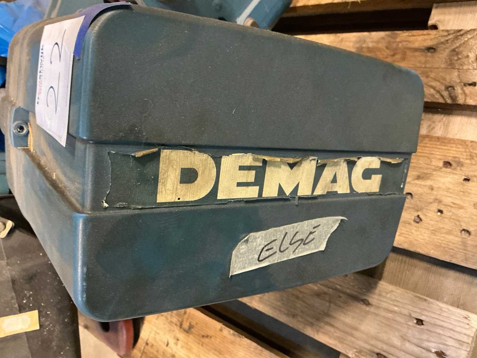 Bedrade afstandsbediening; loopkat Merk: Demag Type: DKUN 10-1250 K V1 F4 Capaciteit.: 2500kg Hijshoogte: 3m Aansluiting: 400V
