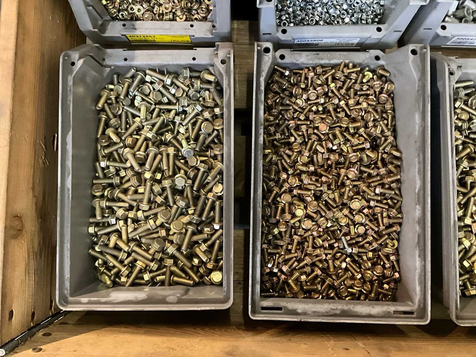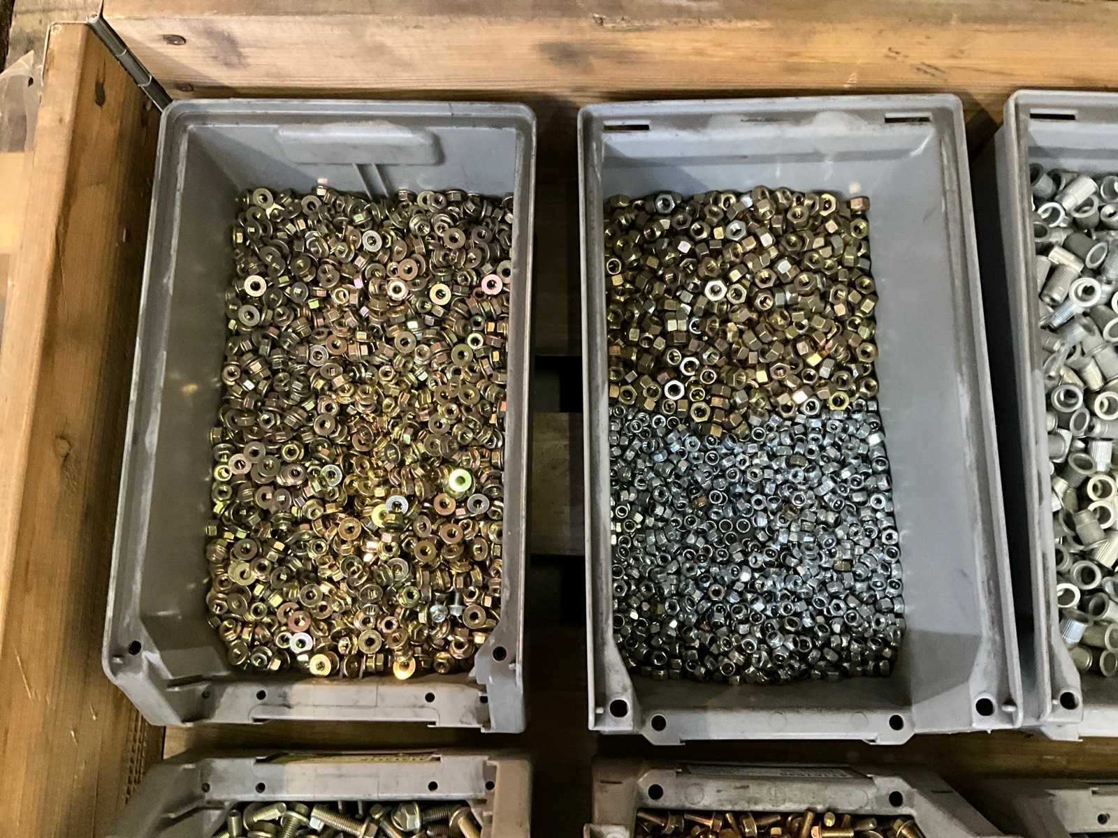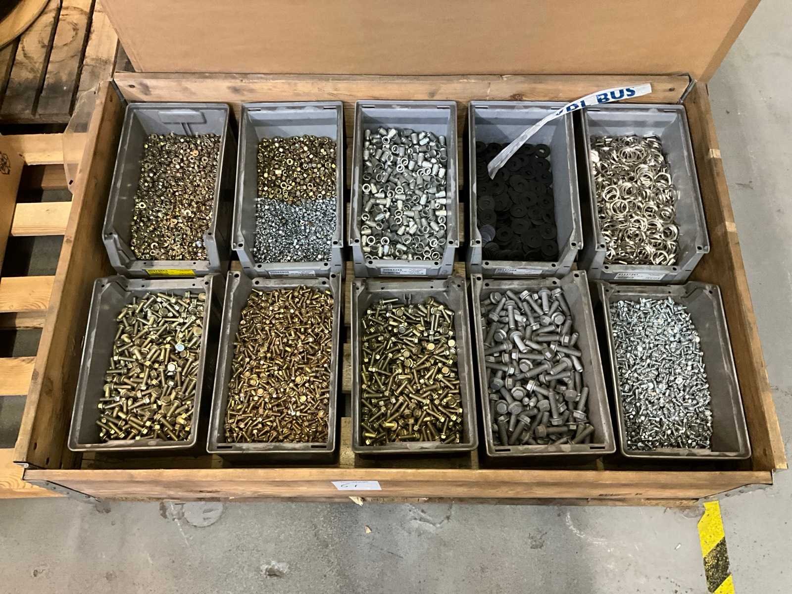 Bestaande uit 10 kunststof magazijnbakken met diverse bevestigingsmaterialen