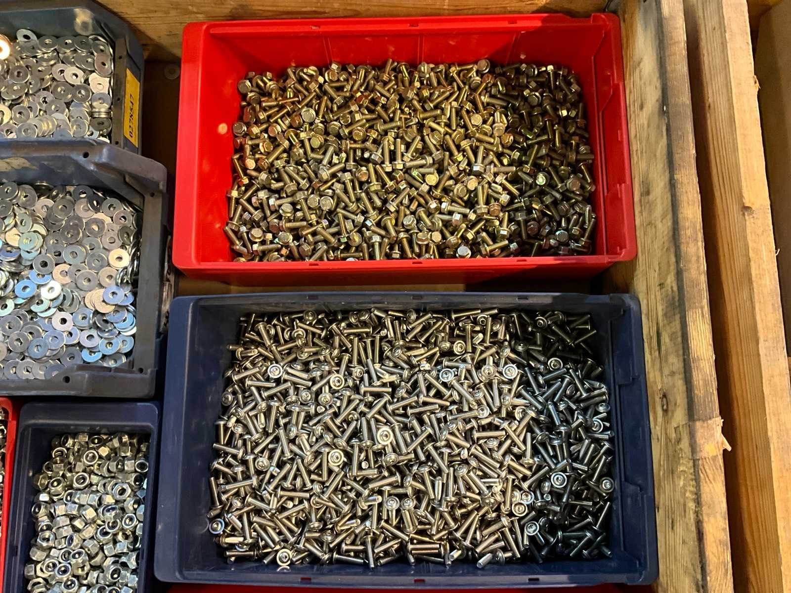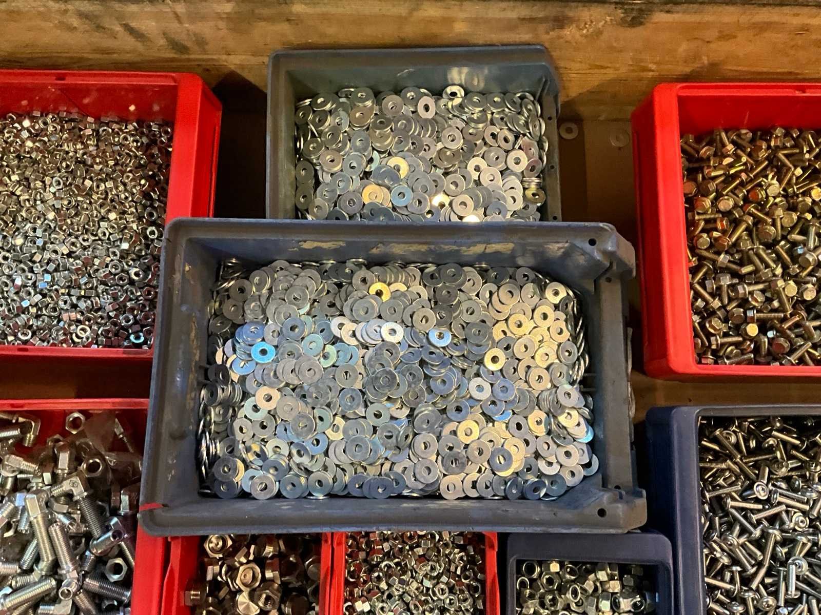 Bestaande uit 11 kunststof magazijnbak met divers bevestigingsmateriaal en t-stukken buitendraad