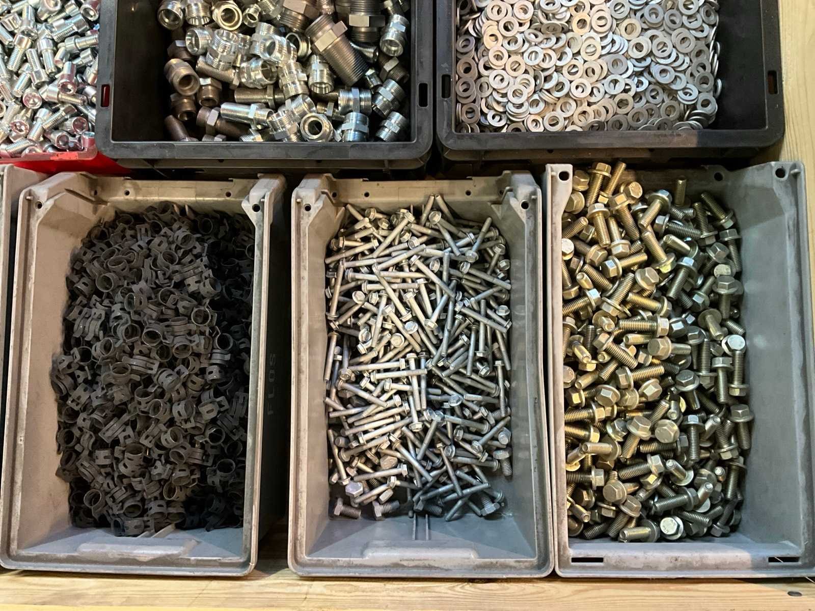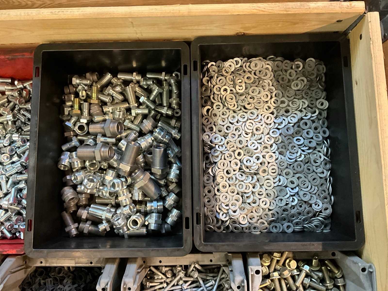 Bestaande uit 9 kunststof magazijnbak met schroefkoppelingen, klemmen, inbus bouten