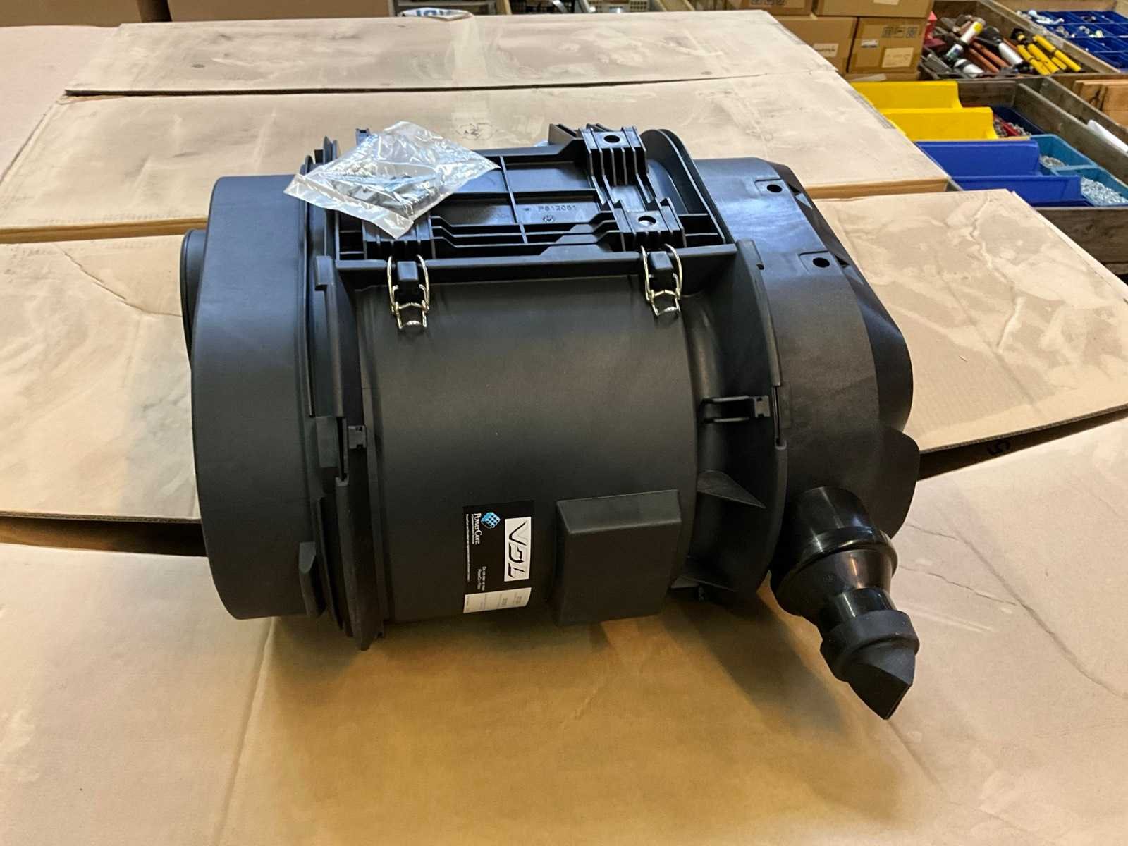 Partij luchtfilterhuizen in doos met diverse toebehoren Merk: Donaldson