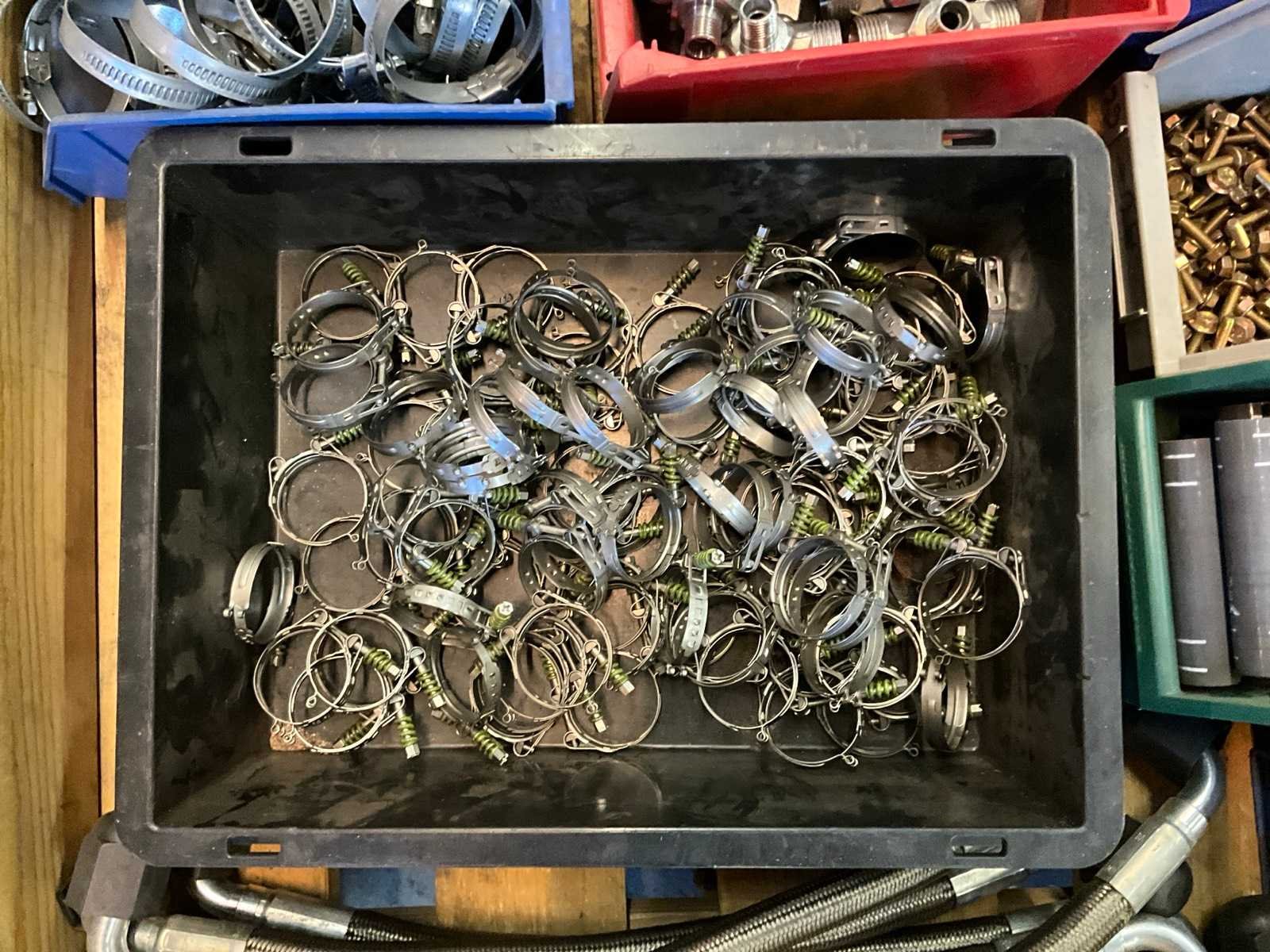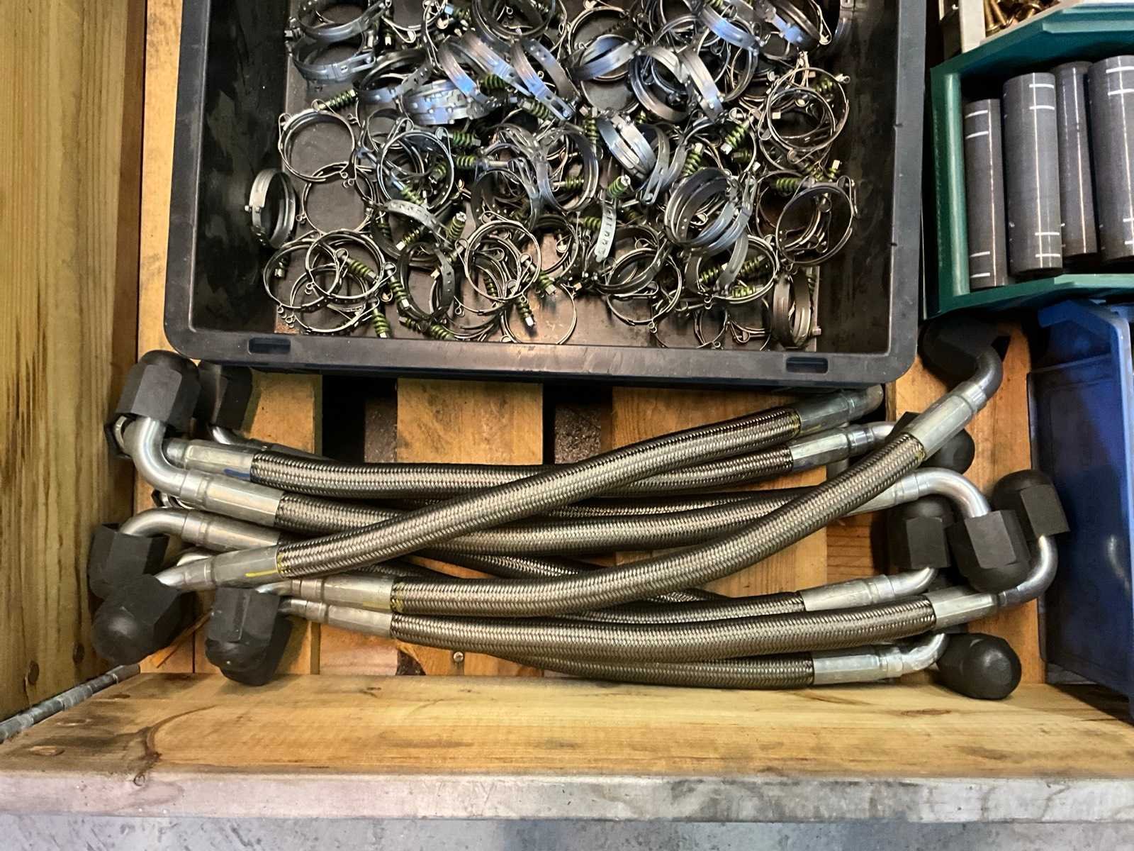 Bouten, moeren, koppelingen, slang klemmen, rubber bochten en buizen, hydrauliek slangen 450mm