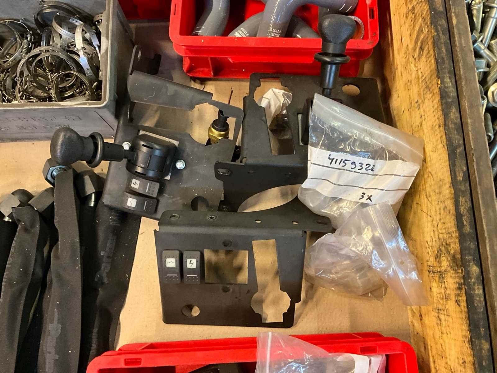 Bestaande uit: 7x hydrauliek slang 450mm, 4x handremhendel met frame, partij slangklemmen, partij 90 graden bochten 25C, 9x rubber bocht