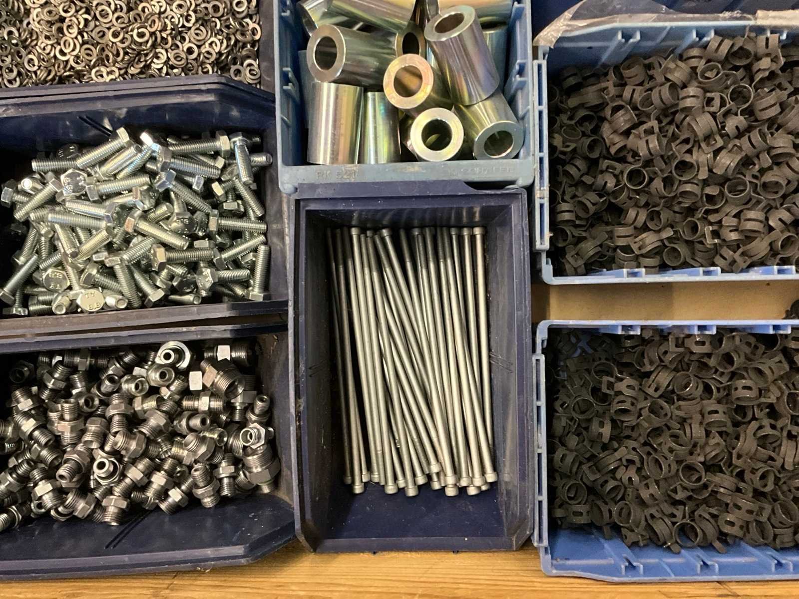 Bestaande uit bouten, bussen, slangklemmen, ringen, oog fitting
