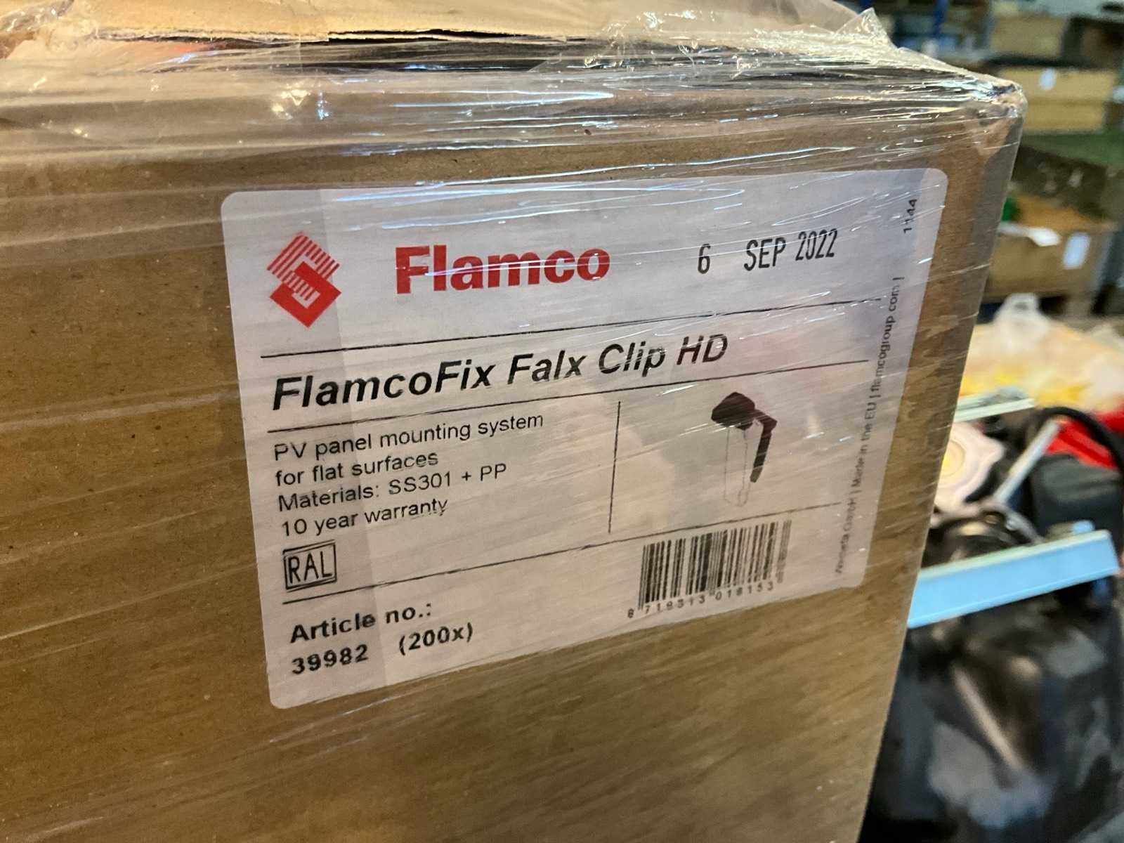 Geschikt voor zonnepanelen; bestaande uit: 50 dozen a 200 stuks Merk: Flamco Type: FlamcoFix Falx Clip HD