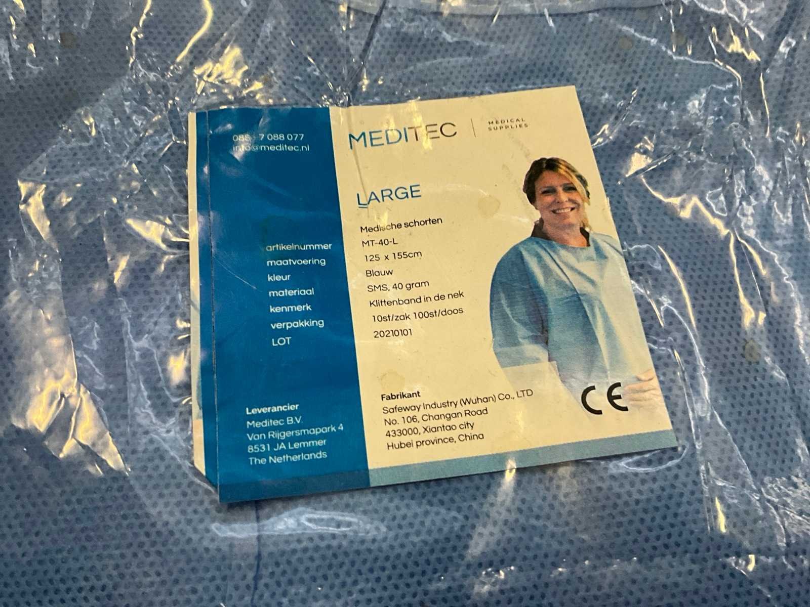11x doos, circa 100 stuks per doos, 125x155cm, SMS, 40gram Merk: Meditec Type: MT-40-L Bouwjaar: 2021 Totale afmeting L: 1200mm Totale afmeting Breedte: 800mm Totale afmeting Hoogte: 1550mm