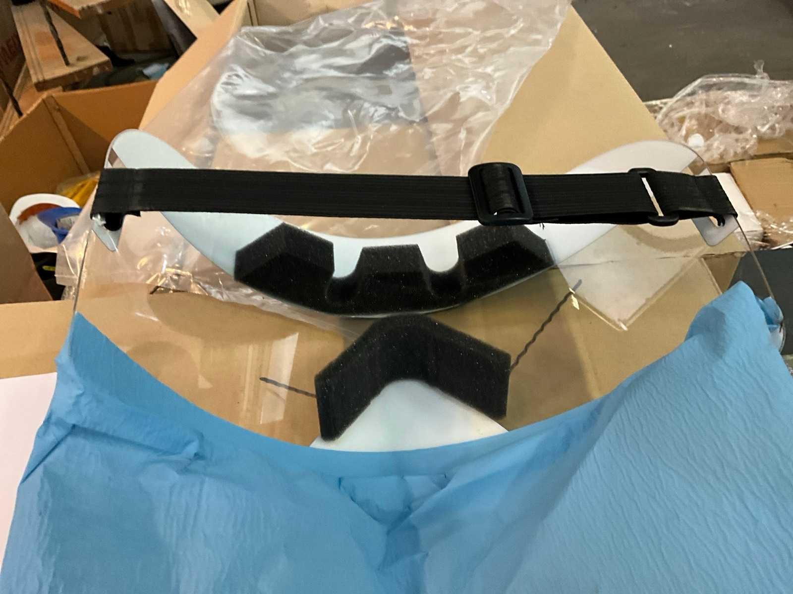 12 dozen met 20 stuks, Polycarbonaat scherm, flap ter bescherming mond, Elastieke band, Merk: Allplast Totale afmeting L: 1200mm Totale afmeting Breedte: 800mm Totale afmeting Hoogte: 1200mm