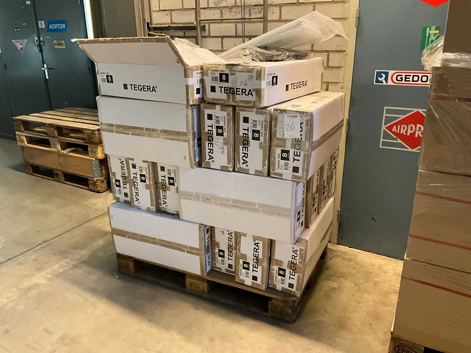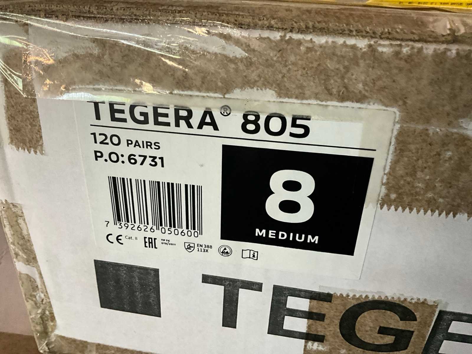 120 paar per doos, 22x doos, 1x geopende doos, filters, Merk: Tegera Model: 805 Maat: 8 Lengte: 120cm Breedte: 80cm Hoogte: 160cm