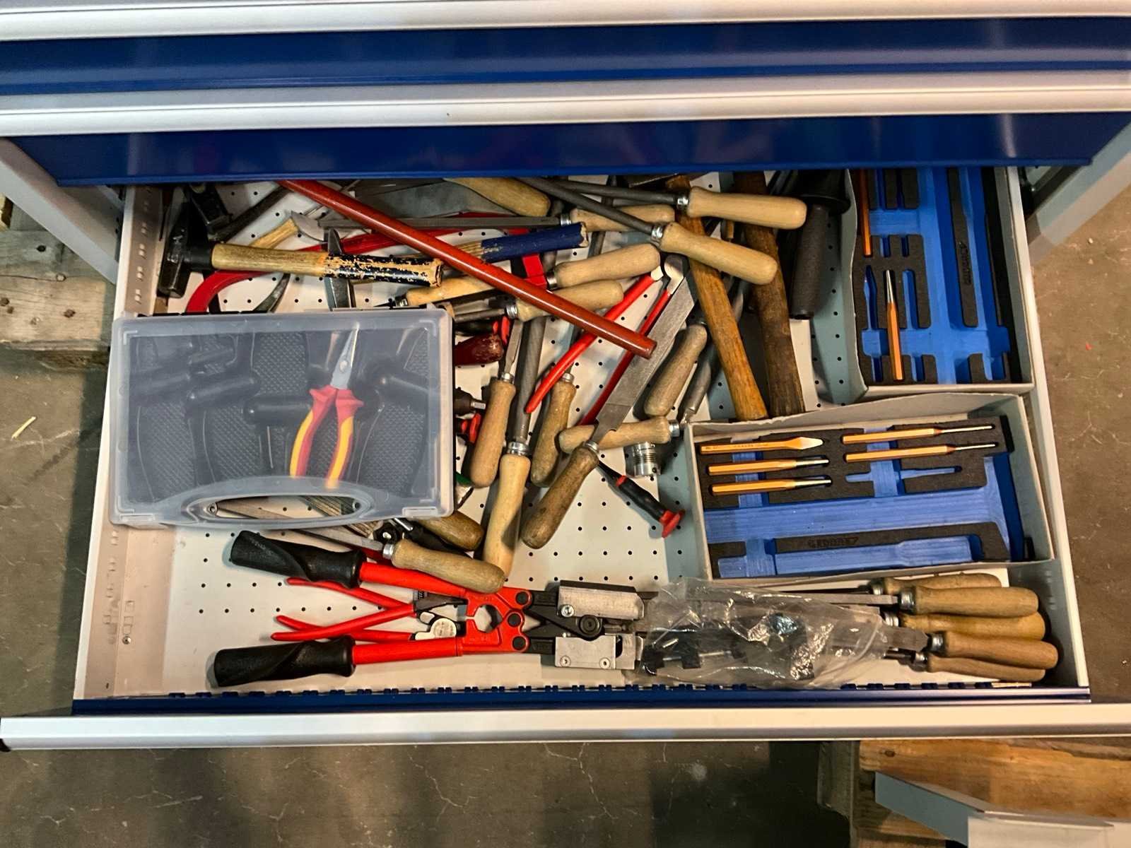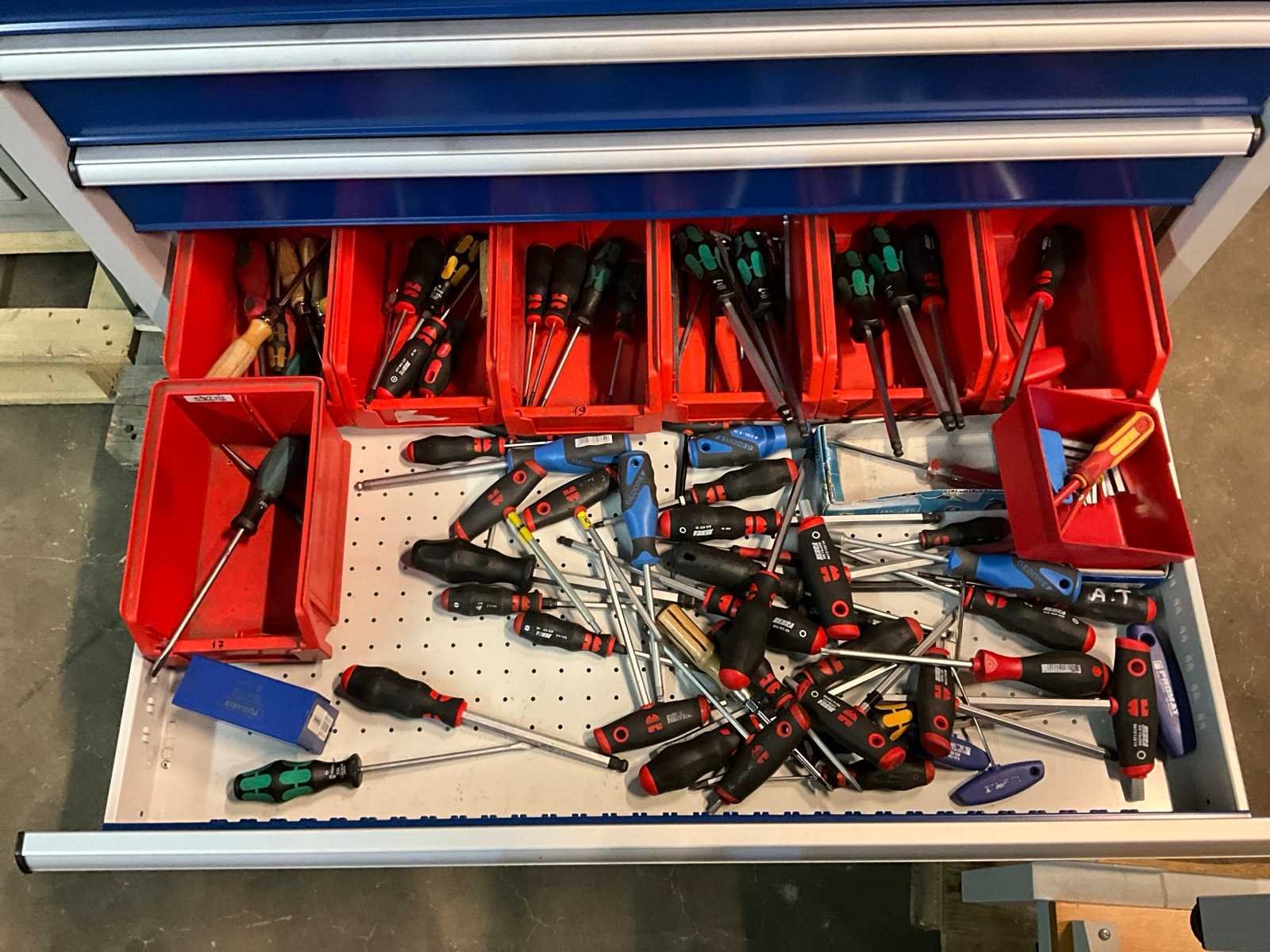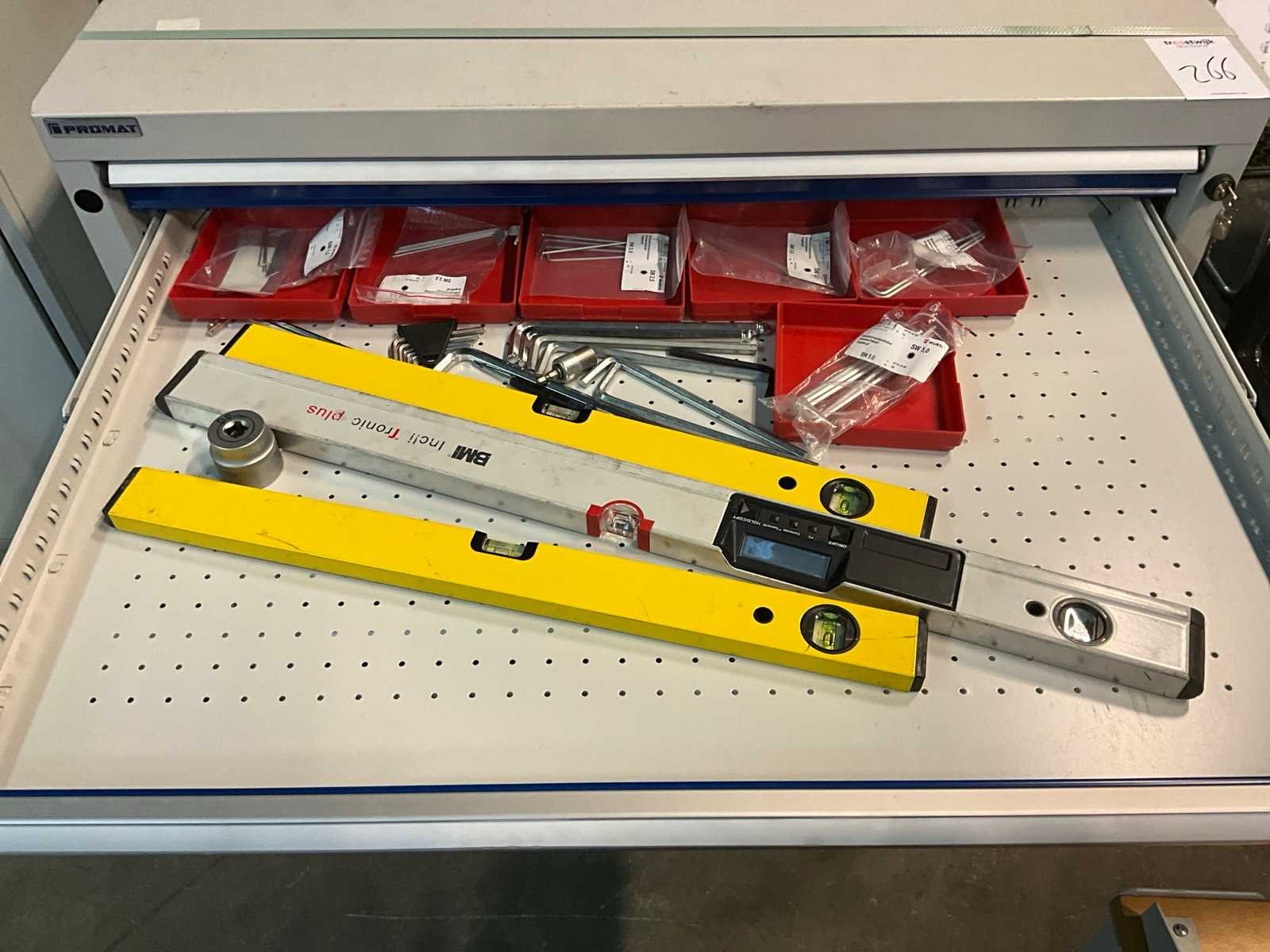Materiaal: metaal; voorzien van inhoud voornamelijk gereedschappen Merk: Promat Totale afmeting L: 680mm Totale afmeting Breedte: 1060mm Totale afmeting Hoogte: 1000mm