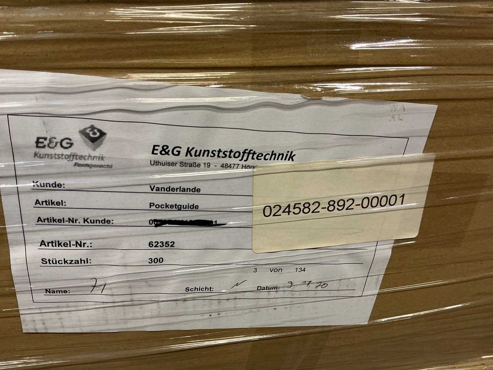 Op 3 euro pallets. Deze dienen geruild te worden. Pallet 1 circa 1800 stuks, pallet 2 circa 4000 stuks, pallet 3 circa 4000 stuks,