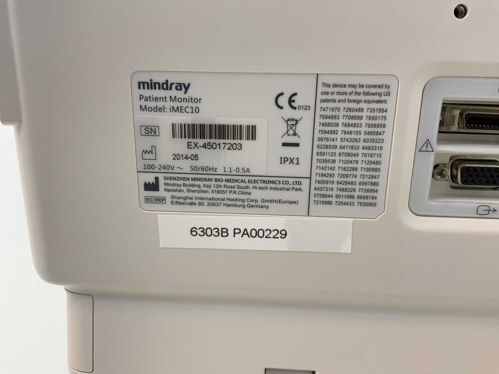 De Mindray IMEC 10 patiëntmonitor is een monitoroplossing voor aan het bed, geschikt voor gebruik in elke medische instelling. Het maakt de observatie mogelijk van essentiële vitale functies zoals elektrocardiogram, ademhalingsfrequentie, hartslag, non-invasieve bloeddruk, invasieve bloeddruk, hartminuutvolume, saturatie en temperatuur. Merk: Mindray Gewicht: 2.9kg Type: Imec10 Bouwjaar: 2014 Aansluiting: 240V