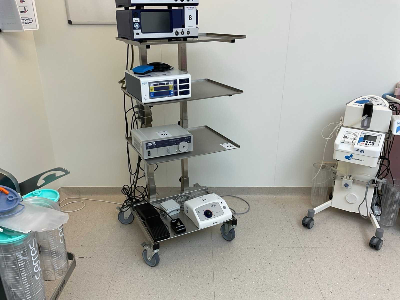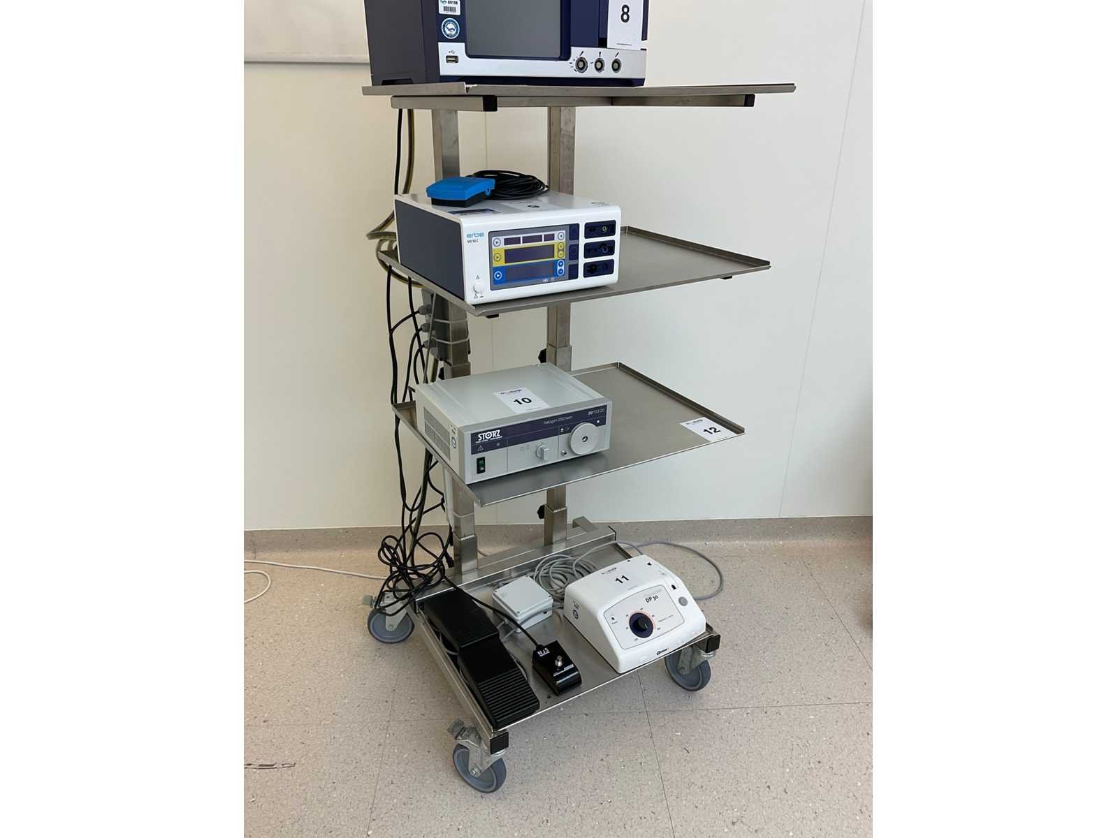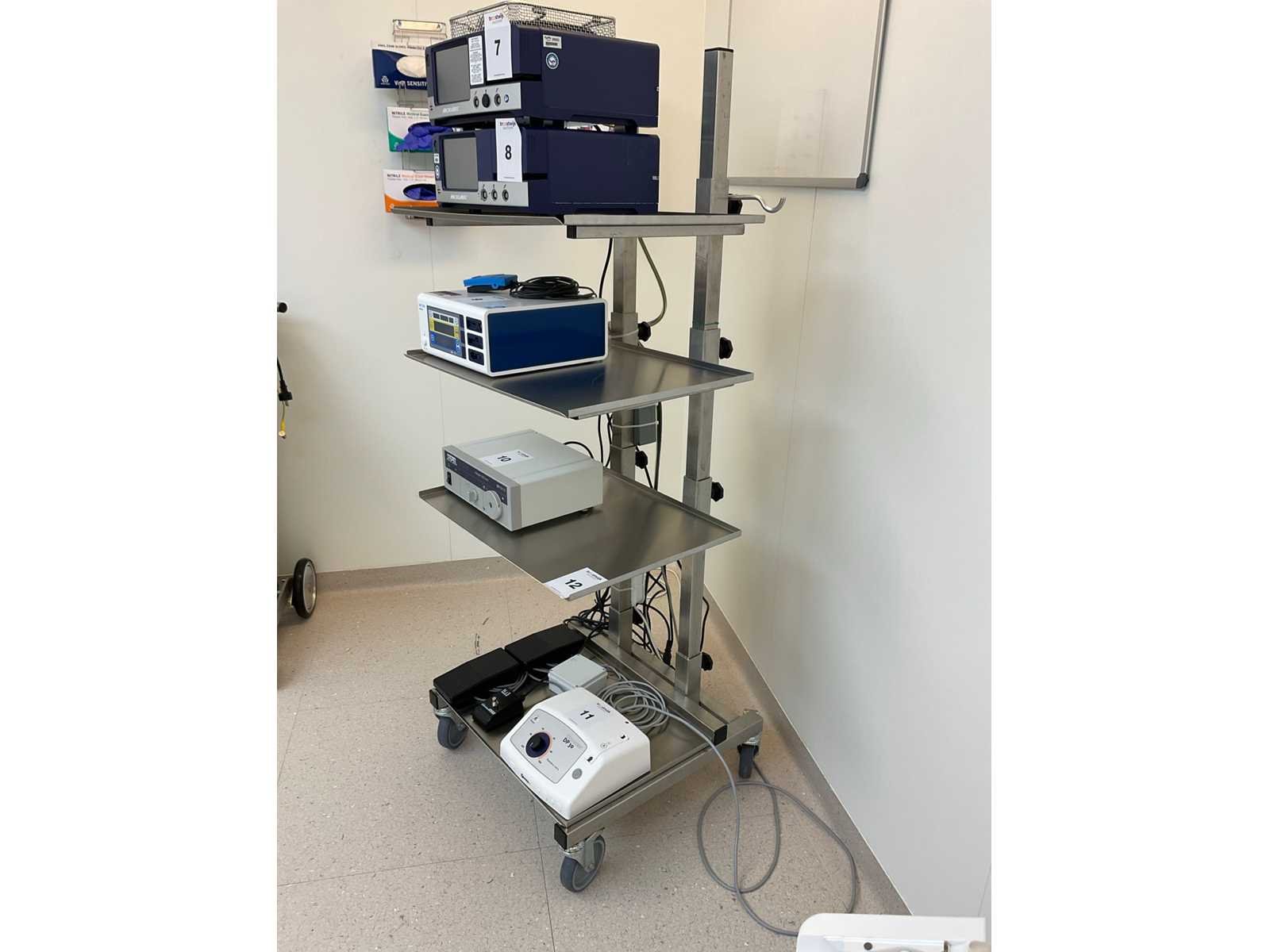 Rvs trolley voorzien van 4 in hoogte verstelbare legborden Medische apparatuur niet inbegrepen Totale afmeting L: 600mm Totale afmeting Breedte: 550mm Totale afmeting Hoogte: 1670mm