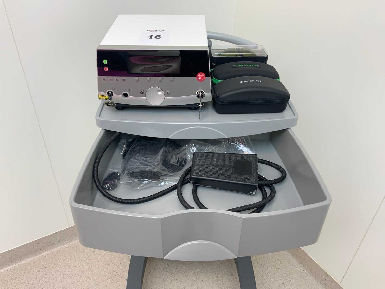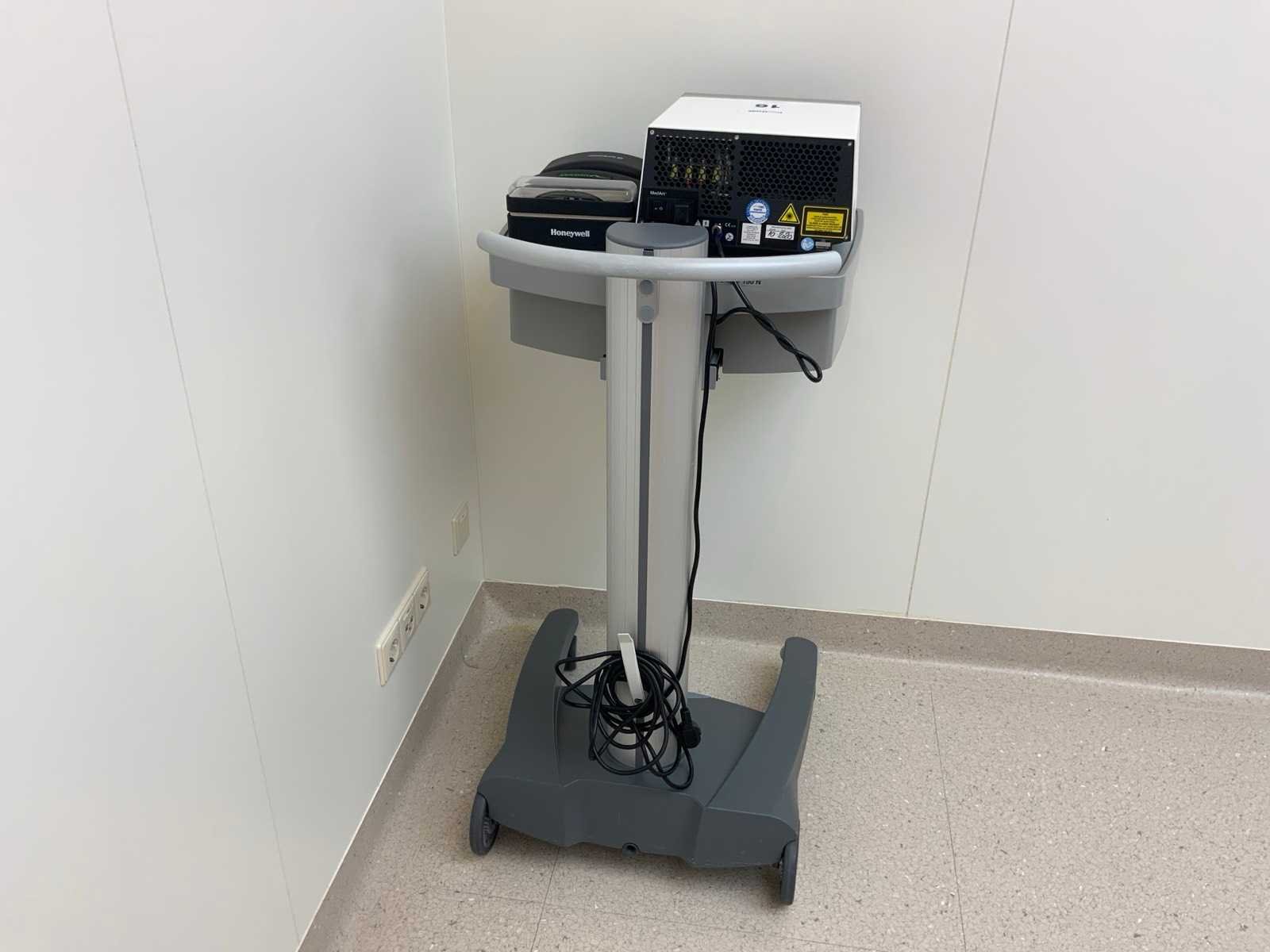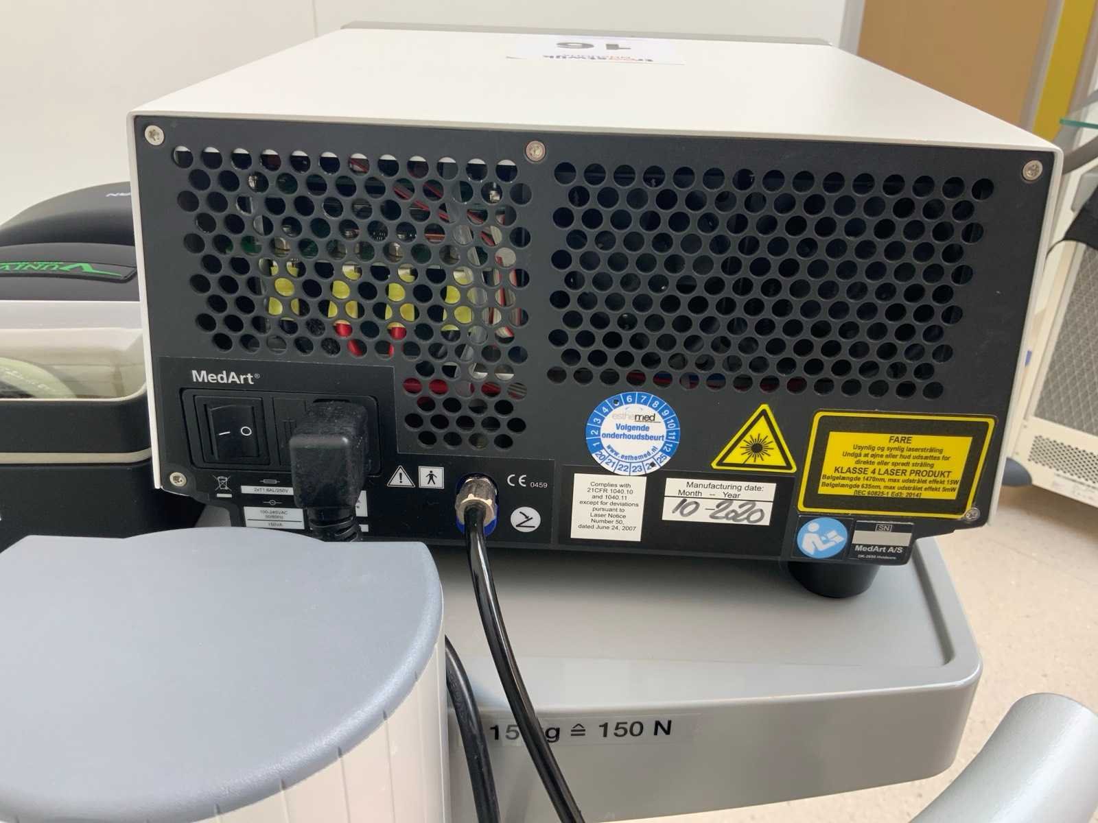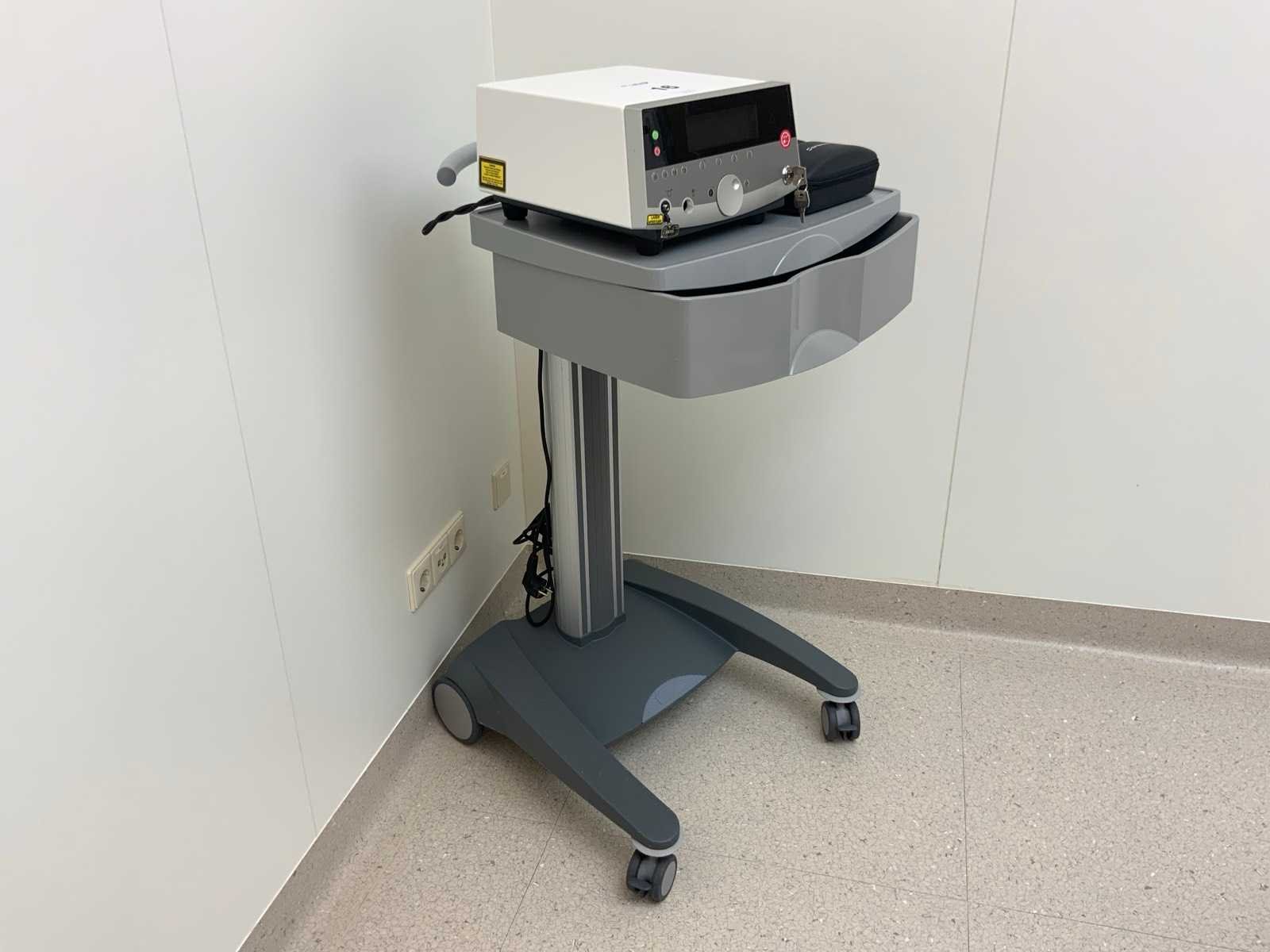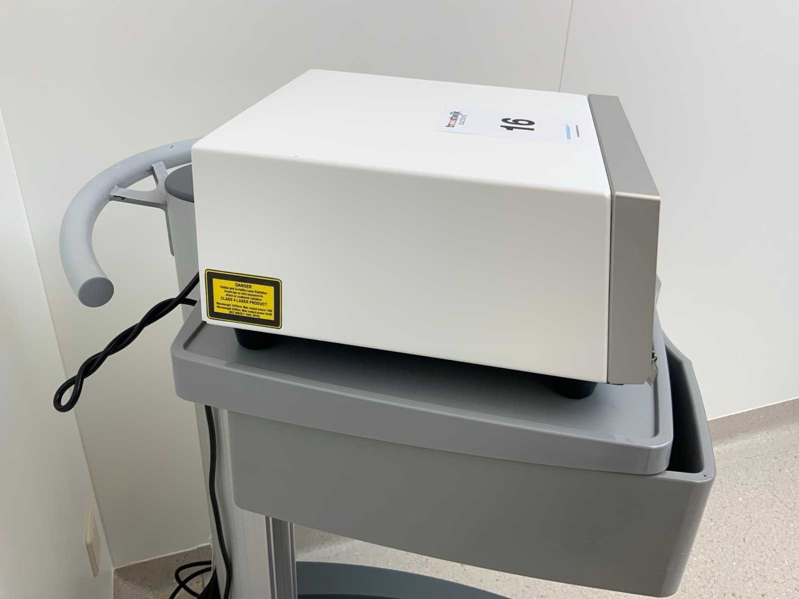 Laserapparaat: De laser wordt primair ingezet voor laser-geassisteerde lipolyse. De laser vervult drie hoofdfuncties tijdens een ingreep: Vloeibaar maken van vet: De laserenergie verhit en vernietigt vetcellen, waardoor ze vloeibaar worden en gemakkelijker (en met minder trauma) kunnen worden afgezuigd. Huidverstrakking: De warmte stimuleert de aanmaak van collageen en fibroblasten, wat zorgt voor een stevigere huid en betere contouren na de behandeling. Stelpen van bloedingen: De laser straal coaguleert bloedvaten tijdens het proces, wat leidt tot minder blauwe plekken, minder bloedverlies en een sneller herstel. De brillen en de in hoogte verstelbare trolley zijn inbegrepen. Merk: MedArt Type: SmartSculpt Serienummer: 21189 Aansluiting: 240V