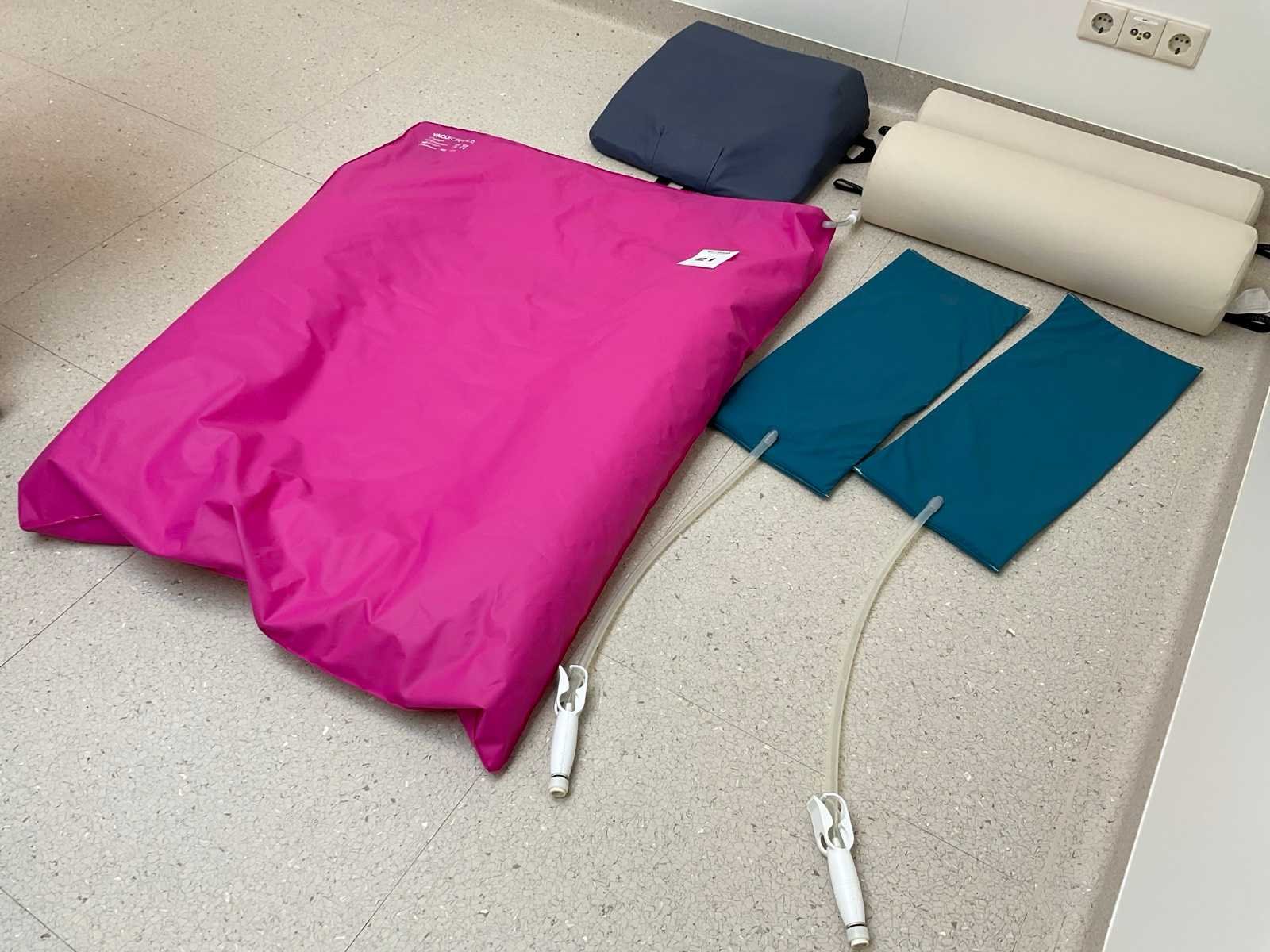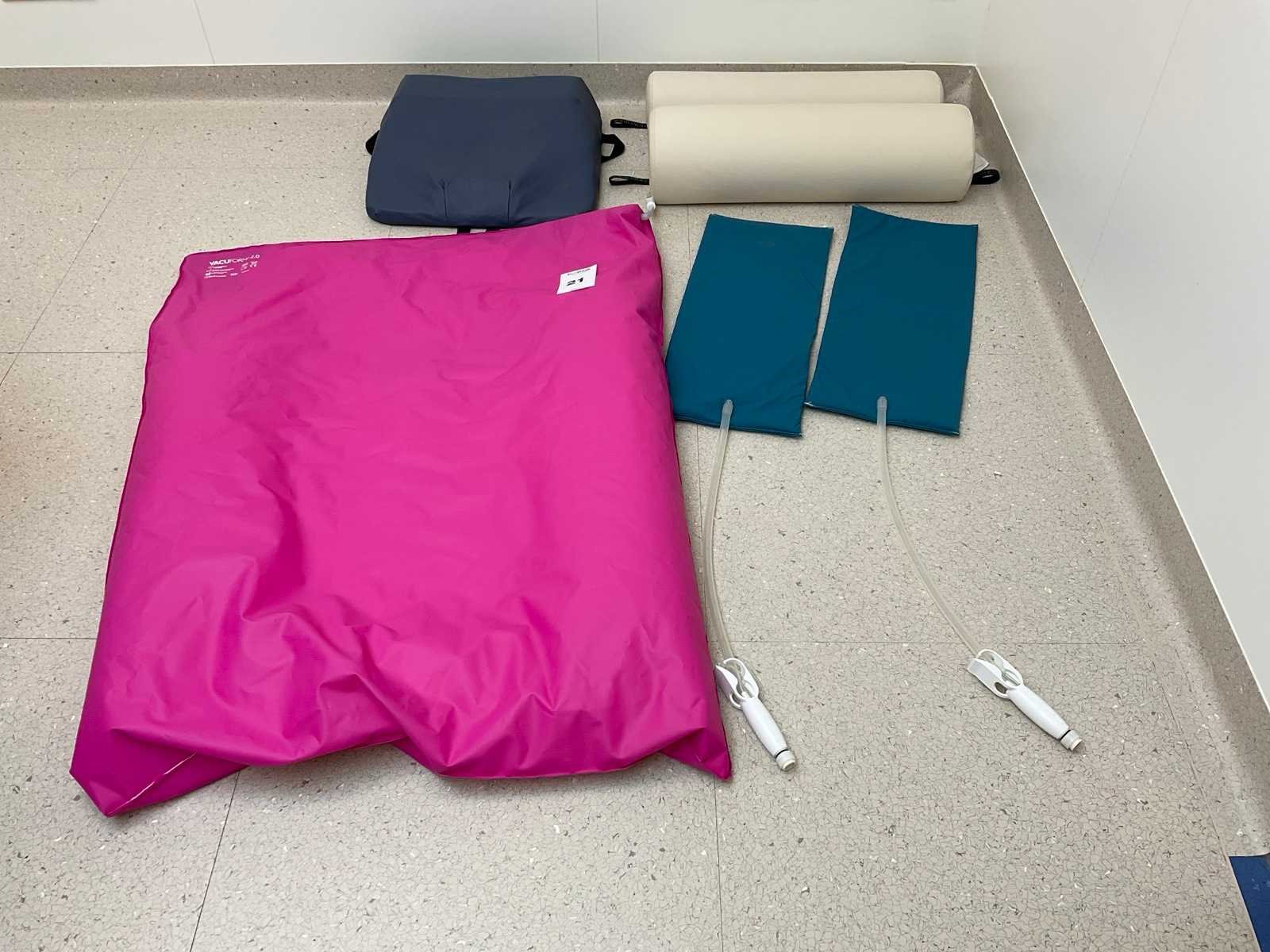 Vaccuümmatras met microspacesysteem ten behoeve van fixatie en druk verdeling, ter voorkoming van decubitus Diverse kussens t.b.v. positioneren Merk: Schmidt Type: Vacuform 2.0 Totale afmeting L: 1200mm Totale afmeting Breedte: 900mm