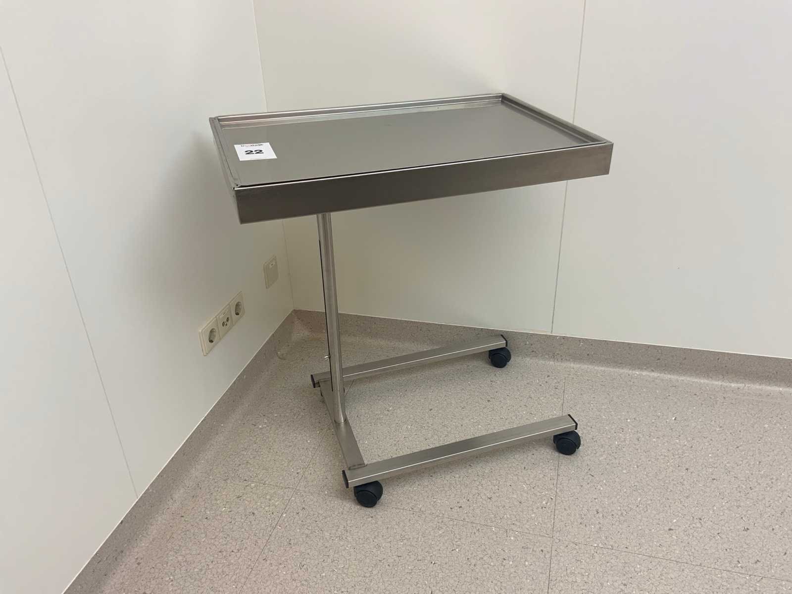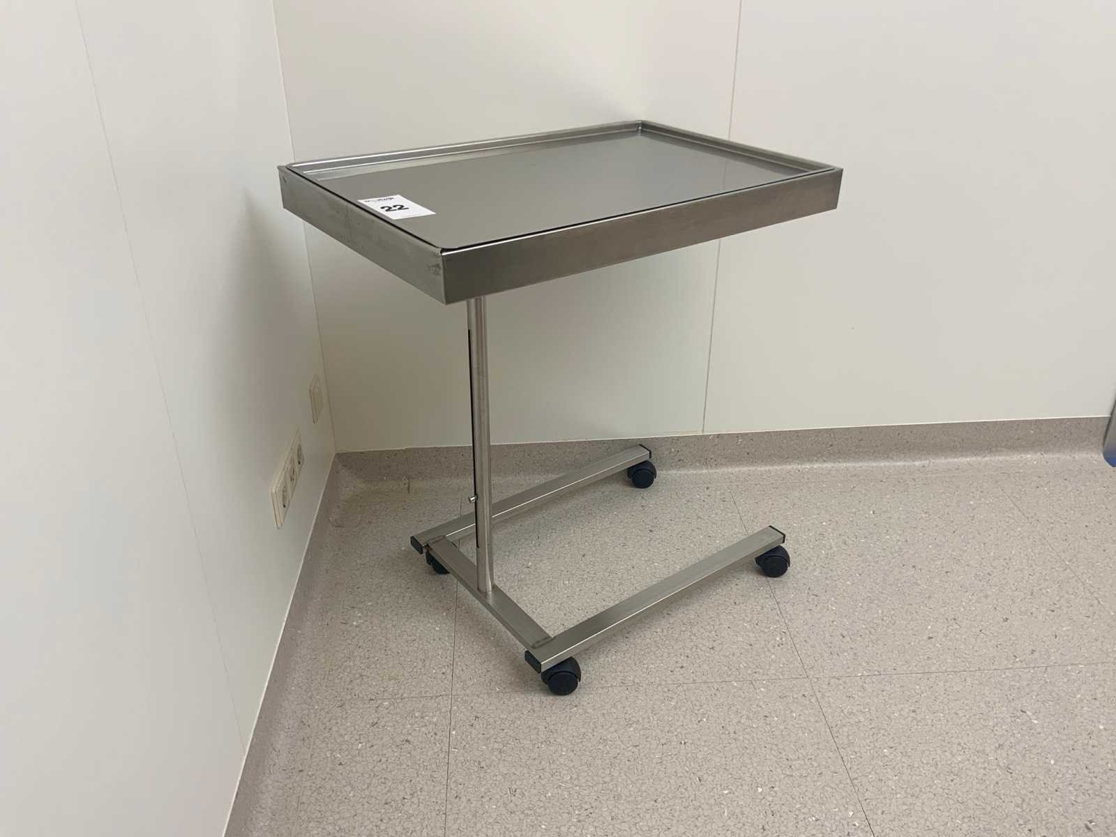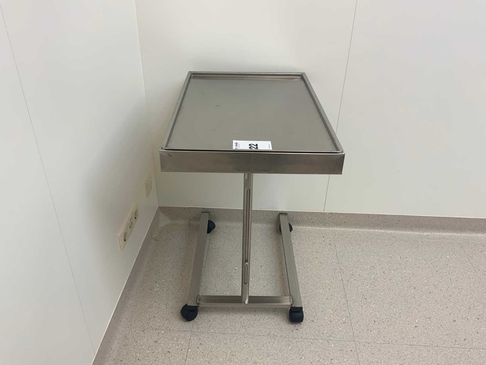 Middels een draaiknop in hoogte verstelbaar. Minimale hoogte 82 cm, maximale hoogte 114 cm. Merk: Titanox Lengte: 73cm Breedte: 48cm Materiaal: Rvs