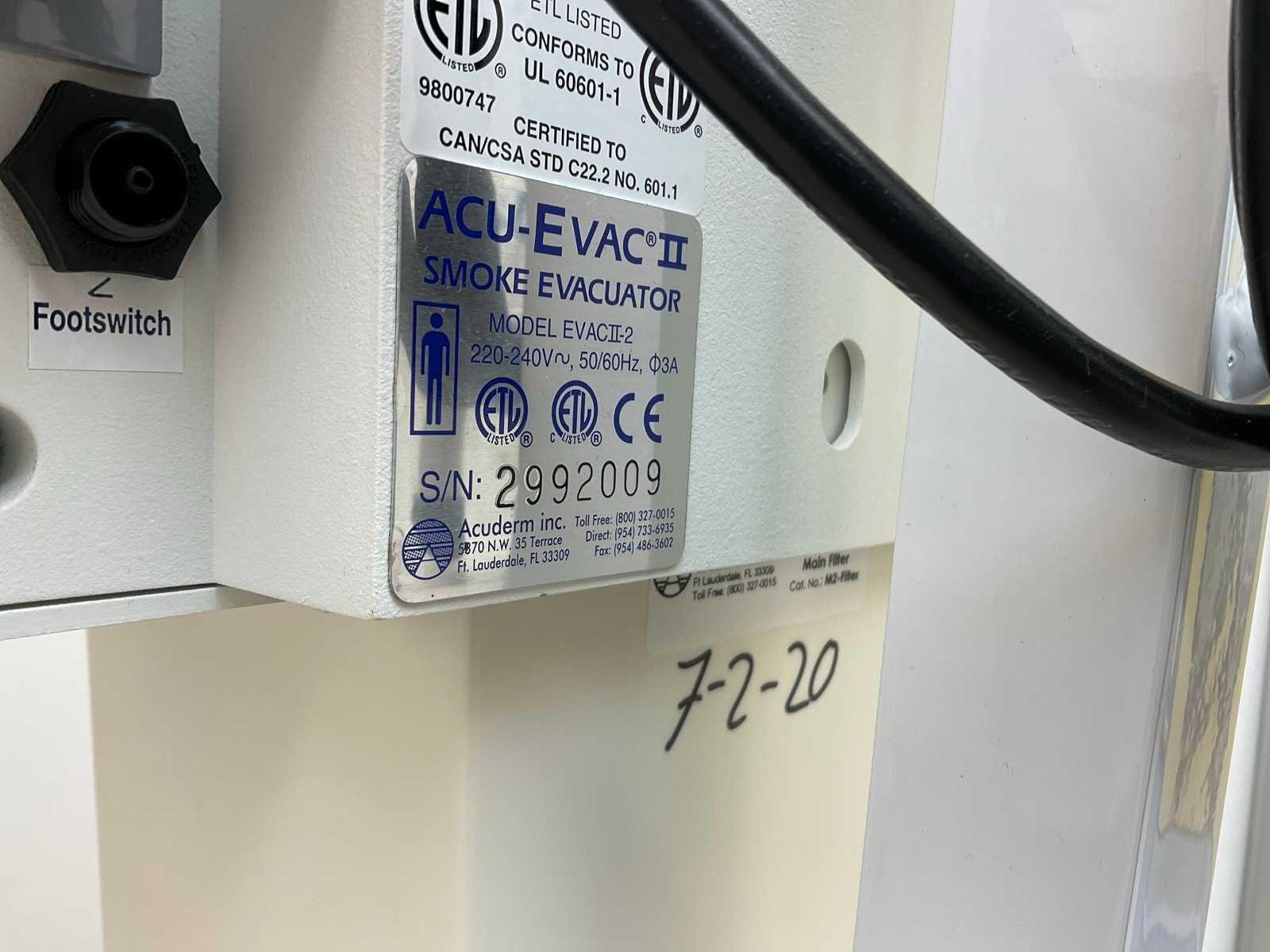 Voor chirurgische rook afzuiging, geschikt voor laser therapie cauterisatie en overige procedures welke rookpluimen genereren Merk: Acu Type: Evac II Aansluiting: 230V