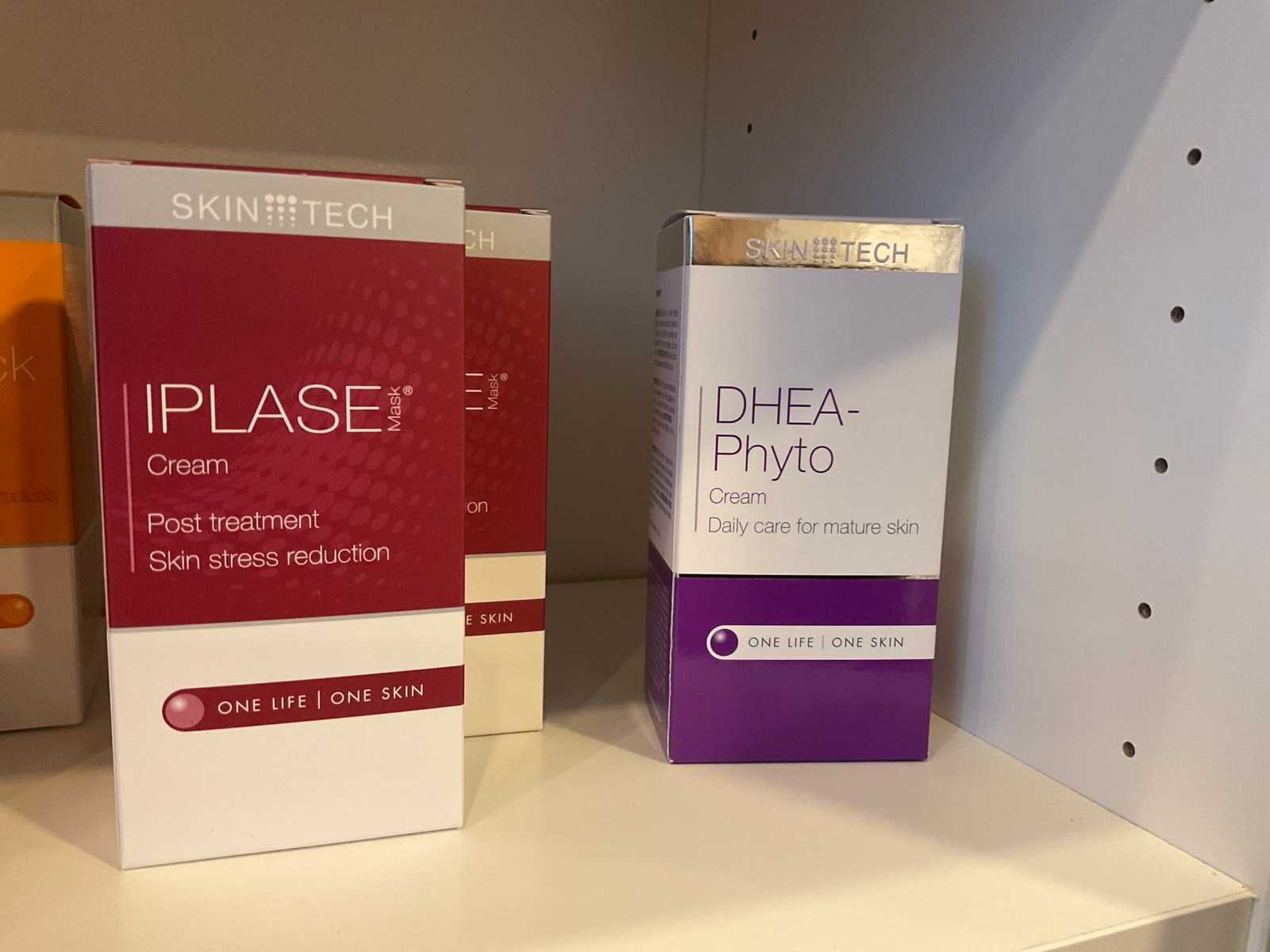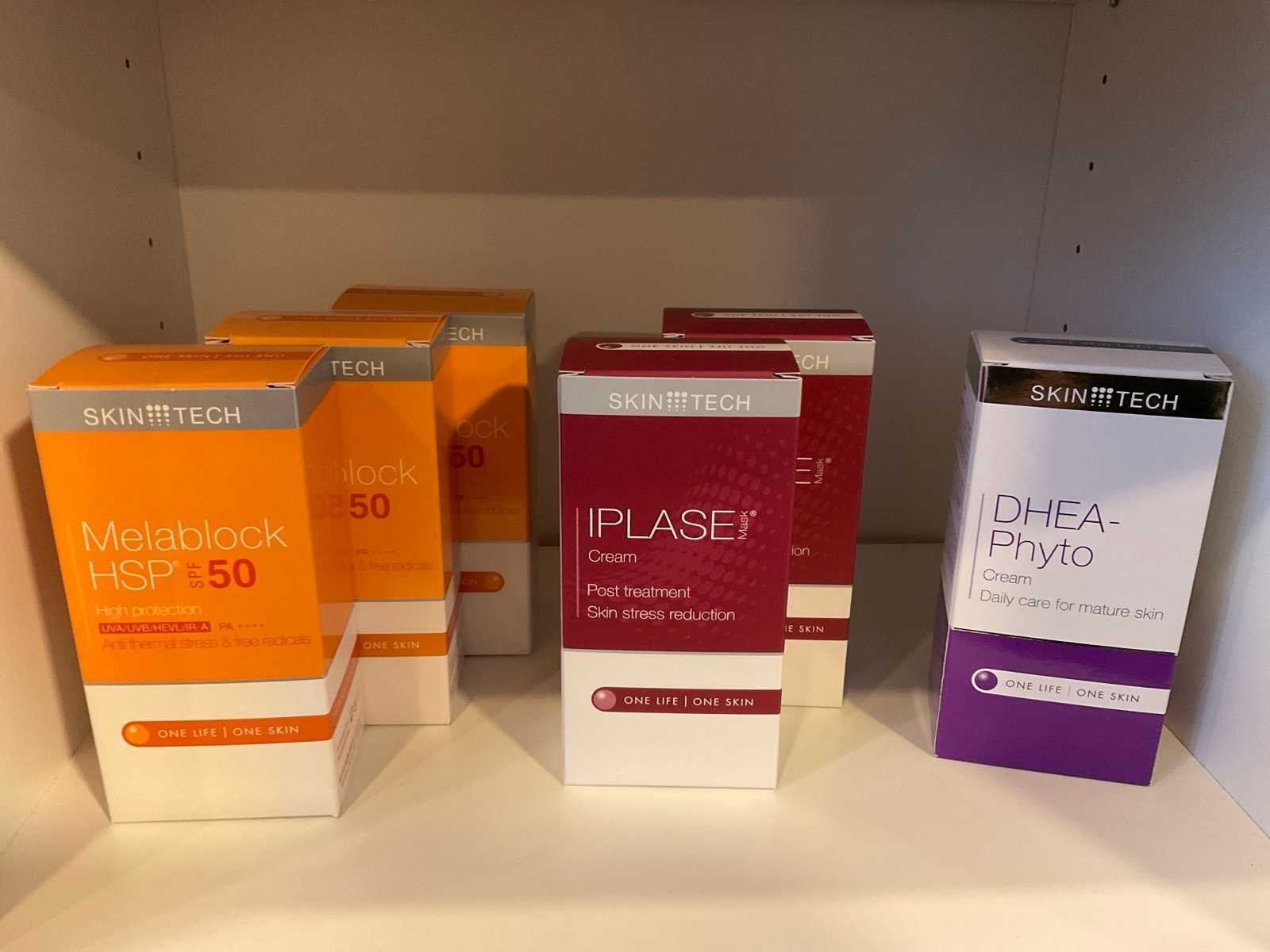 Bestaande uit iplase creme (post behandeling), metablock hsp 50 zon bescherming en dheaphyto creme Merk: Skintech