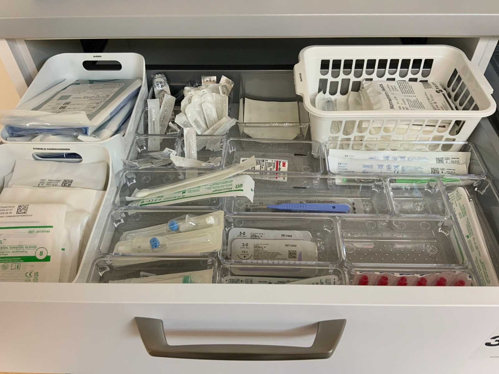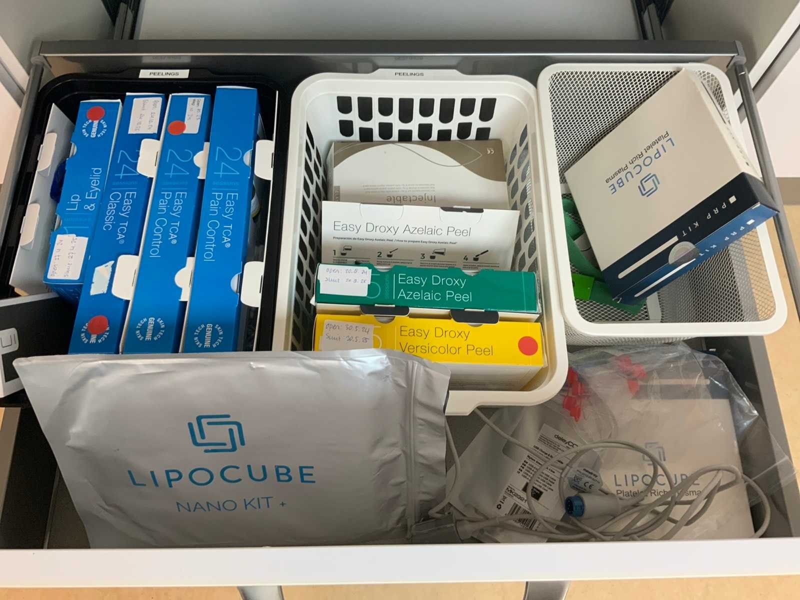 Bestaande uit onder andere: -injectie en infusie materiaal -mondkapjes -bekkentjes -ok schorten -Adipo cream (barrier booster) -easy TCA pain control van Skin Tech