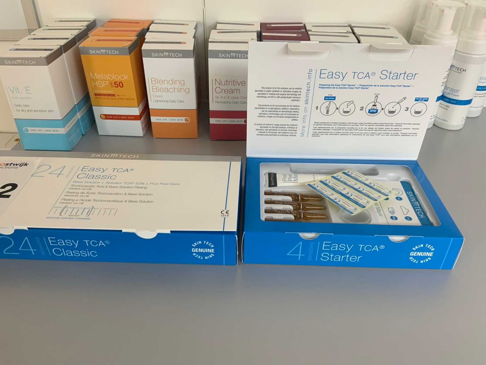 Bestaande uit onder andere: -diverse huidcrèmes -cleanser foam -easy TCA starter Merk: Skin Tech