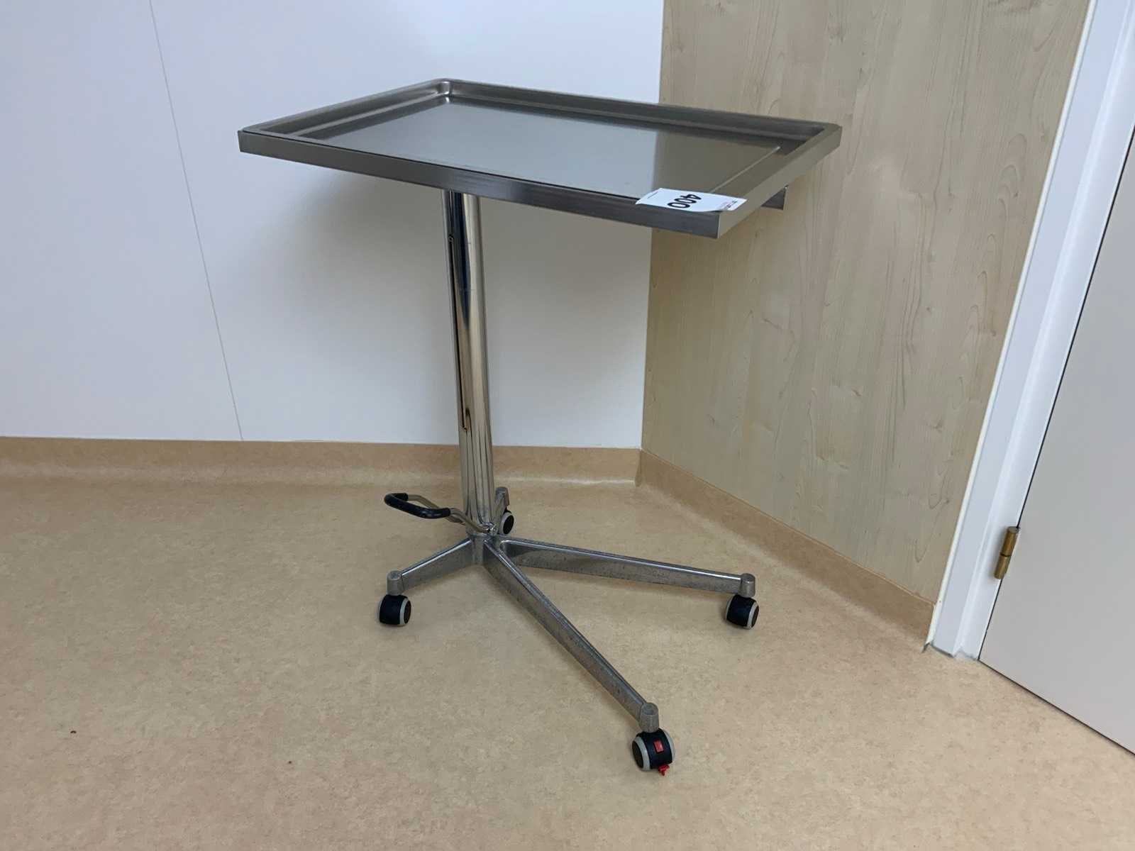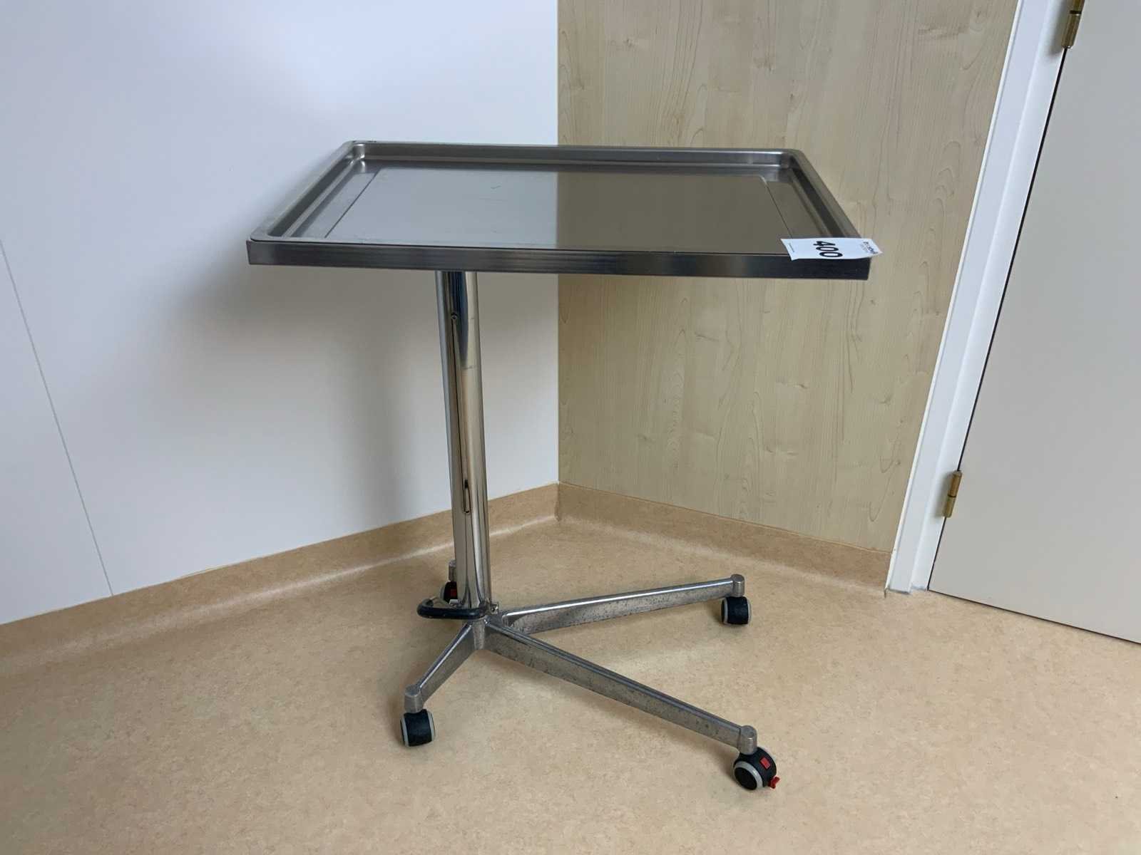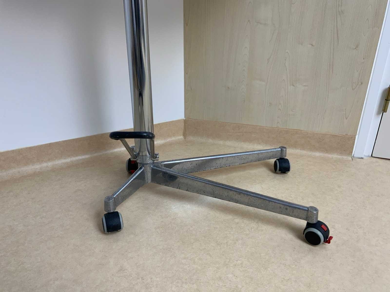 Middels een voetpedaal in hoogte verstelbaar, minimale hoogte 90 cm , maximale hoogte 123 cm. Lengte: 71cm Breedte: 48cm Materiaal: Rvs