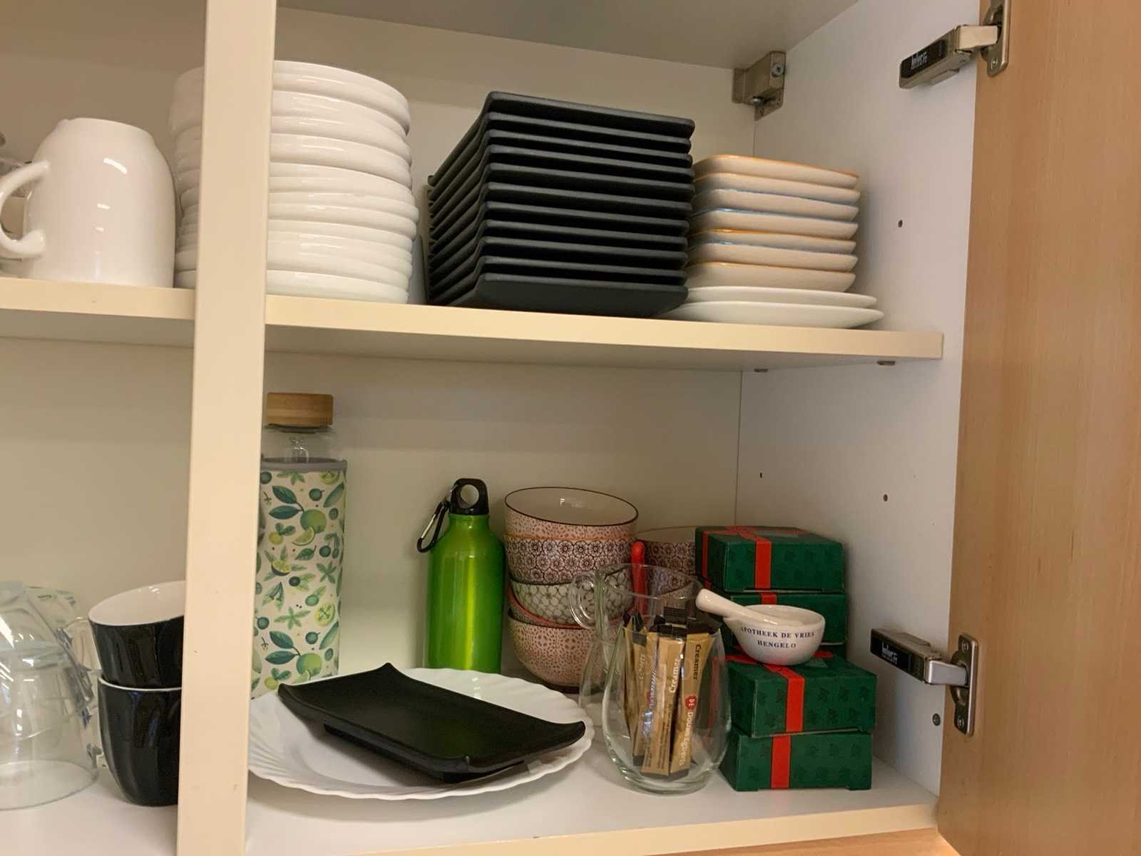 Bestaande uit diverse mokken, magnetron, caterchef toaster, waterkoker, grill, schoonmaakgerei, inhoud van de keukenkastjes Vaatwasser afzuigkap en overige nagelvaste delen niet inbegrepen Merk: Samsung