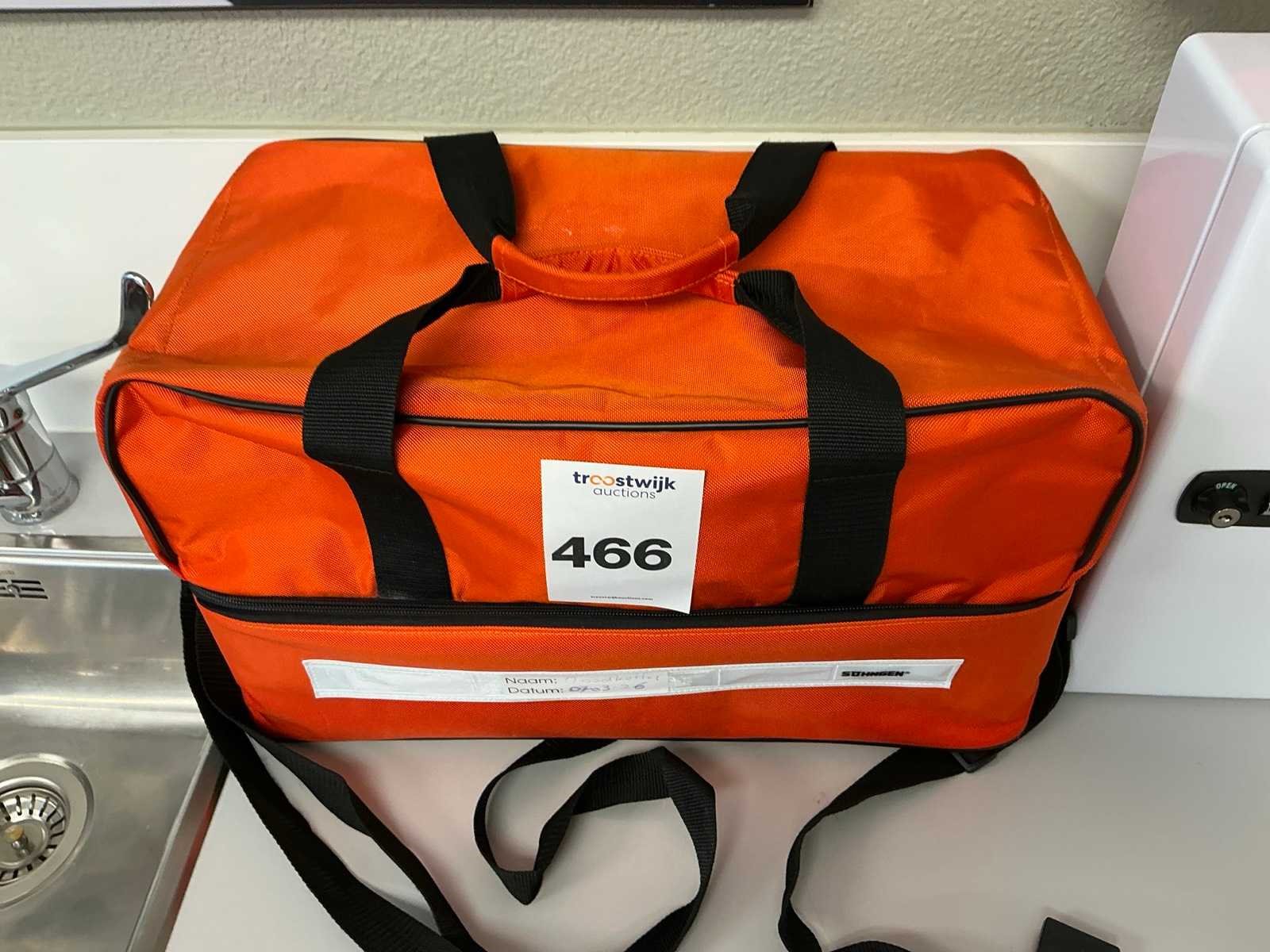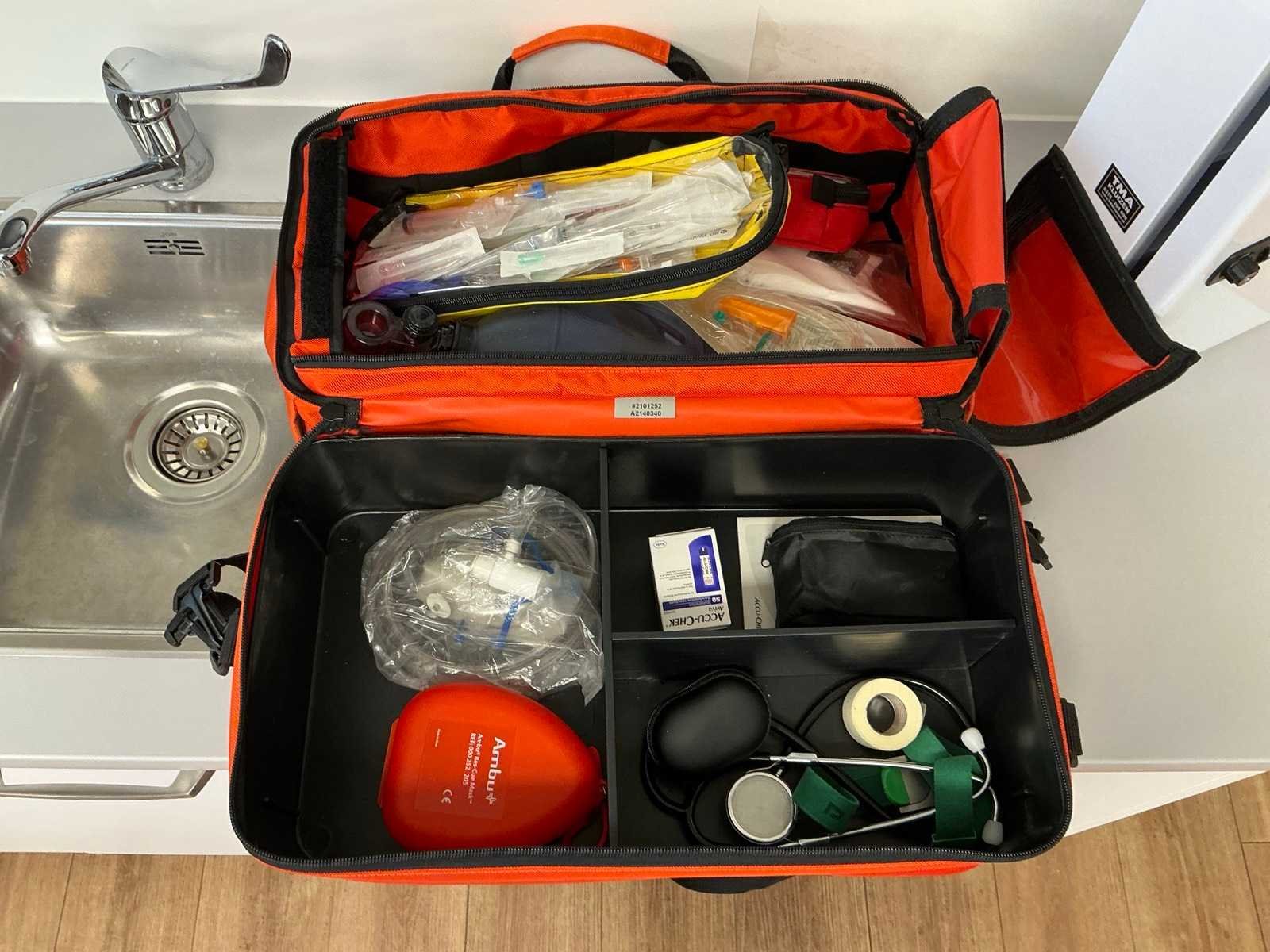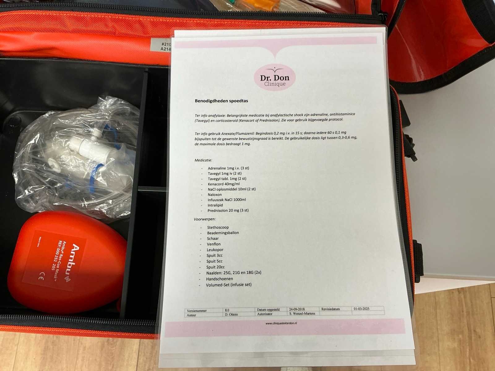1 spoedtas met diverse medische hulpmiddelen, 1 TMA kluisje met cijferslot