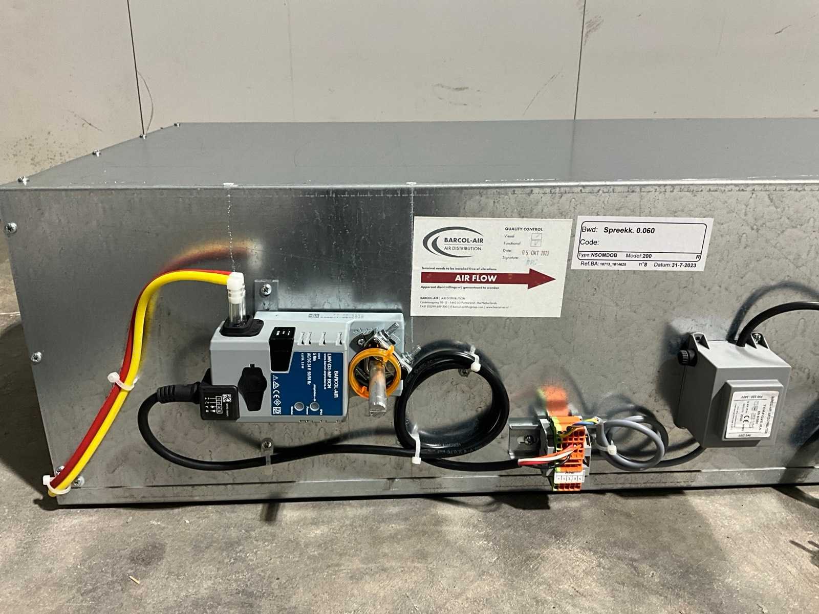 Type: NSOMDOB Model: 200 Merk: Barcol-Air Type: Variable Air Volume Terminal Bouwjaar: 2023 Eigen gewicht: 40kg Totale afmeting L: 1650mm Totale afmeting Breedte: 620mm Totale afmeting Hoogte: 270mm