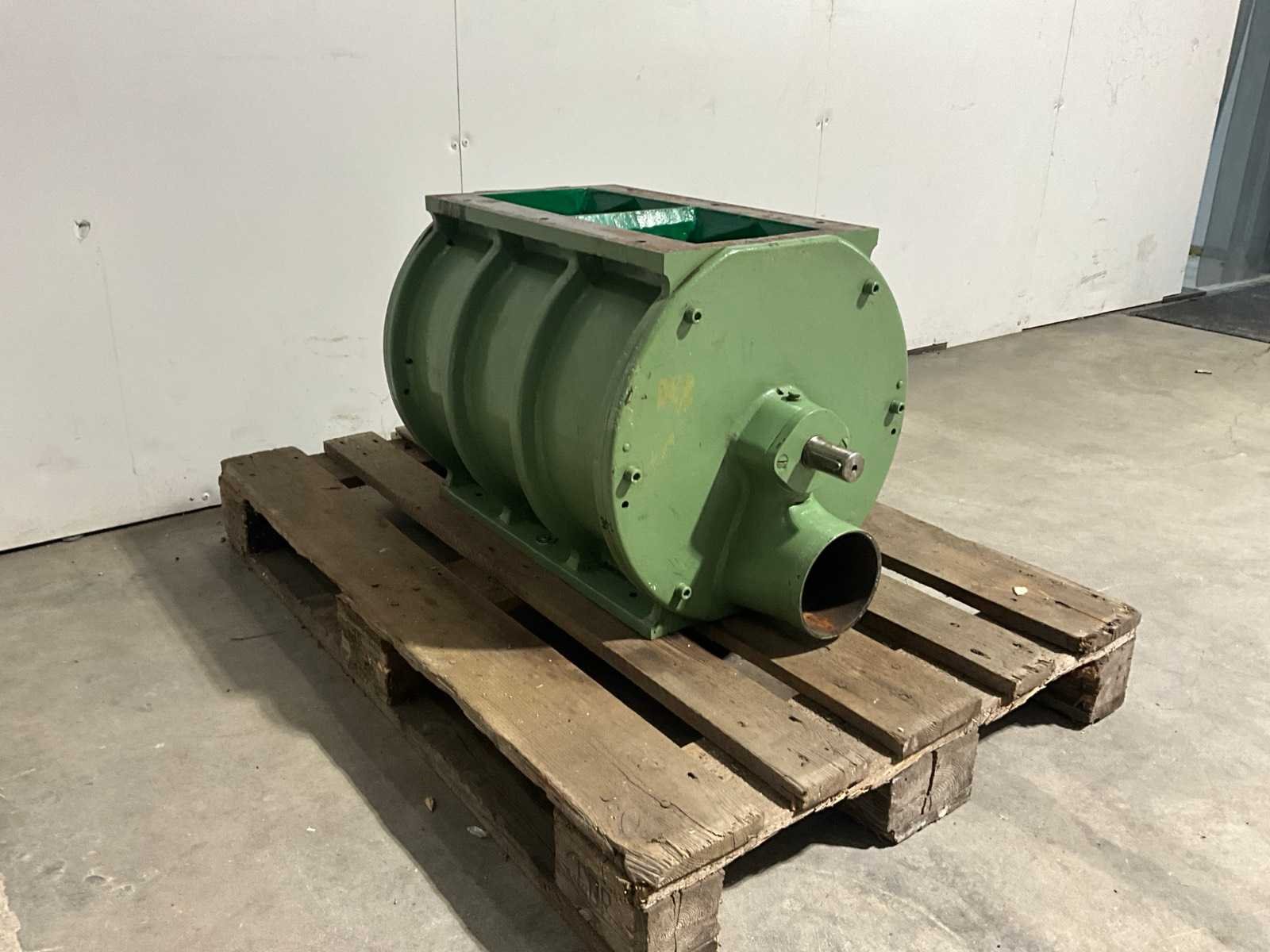 Aansluiting: 120mm Opening: 500 x 200mm Celgrootte: 540 x 160 mm Cellen: 8 As: 35mm Type: Blow Through Rotary Valve Totale afmeting L: 860mm Totale afmeting Breedte: 480mm Totale afmeting Hoogte: 460mm