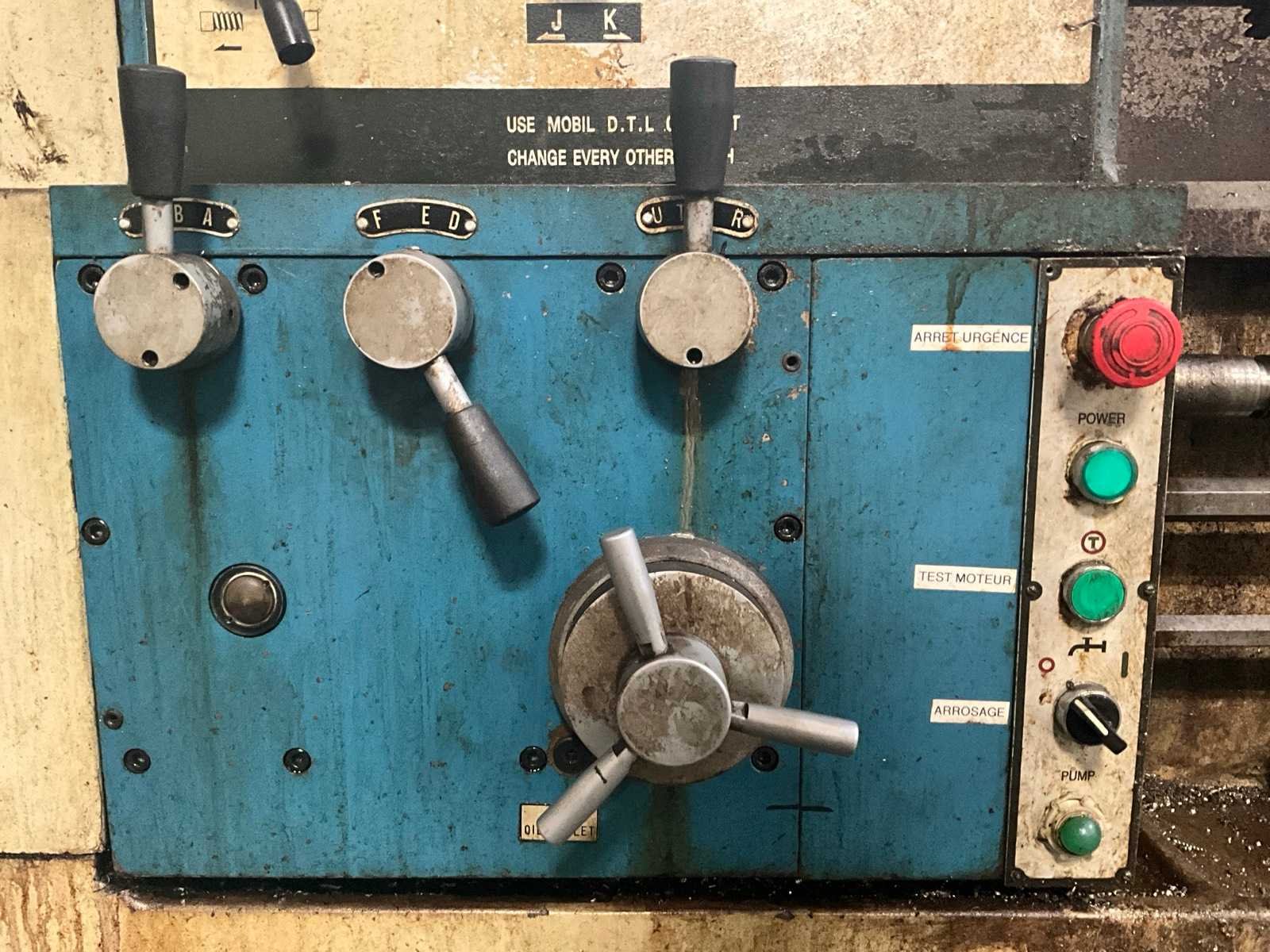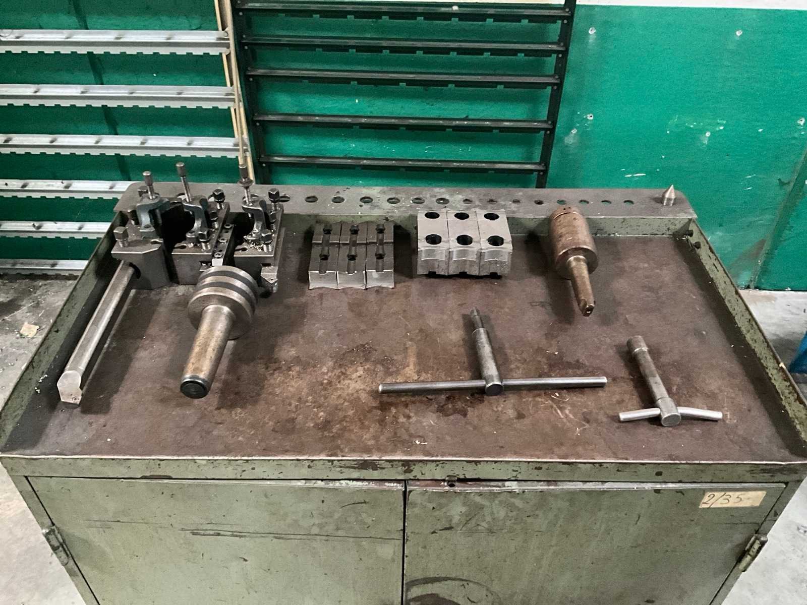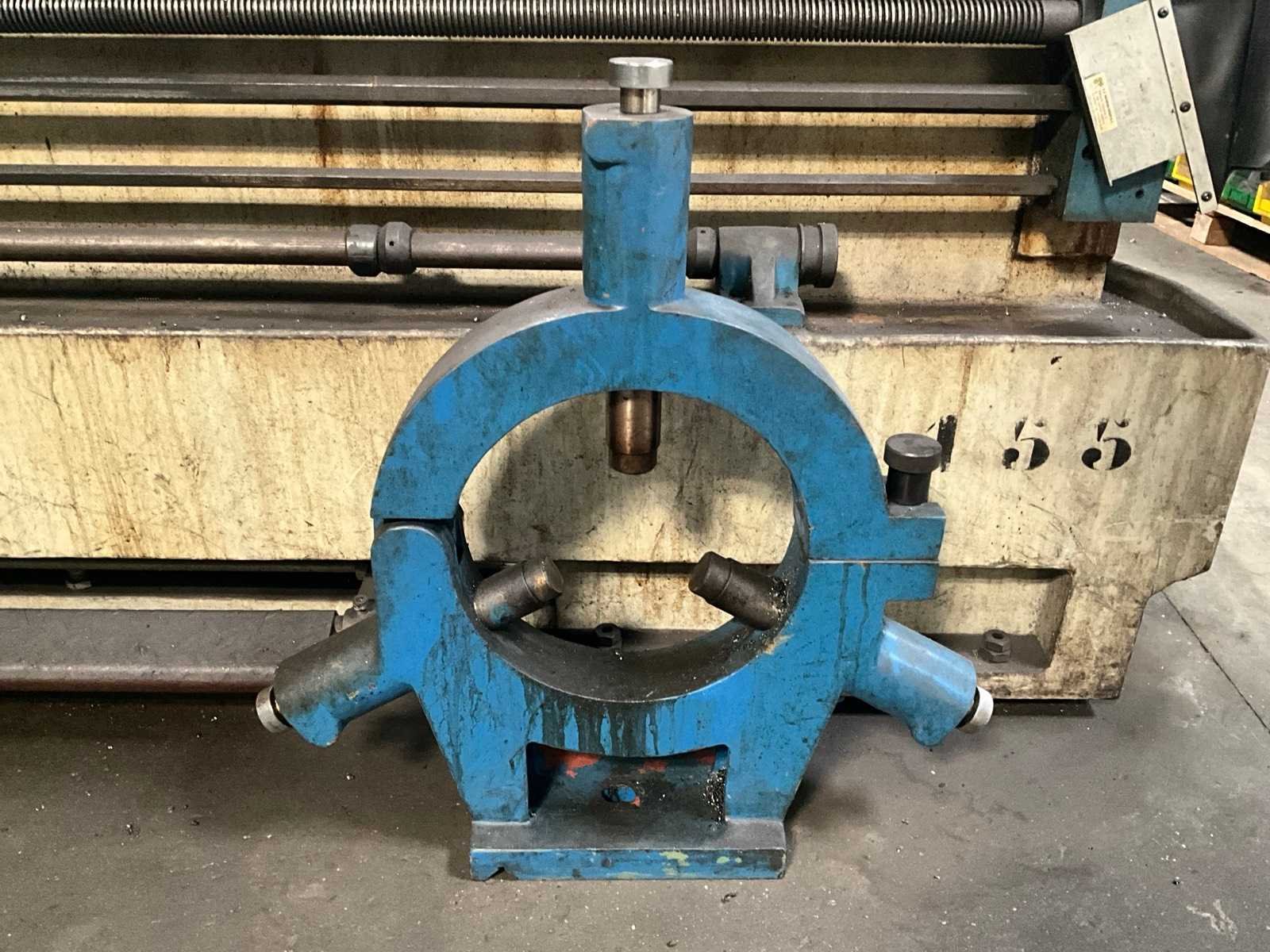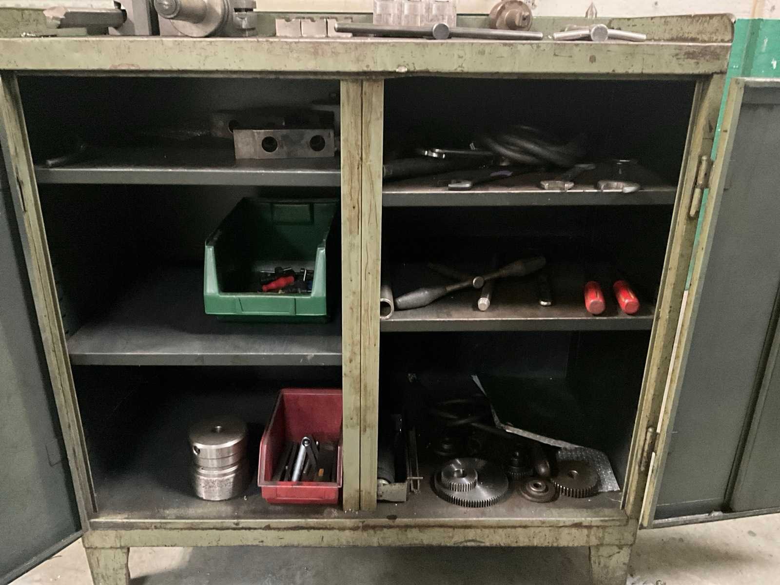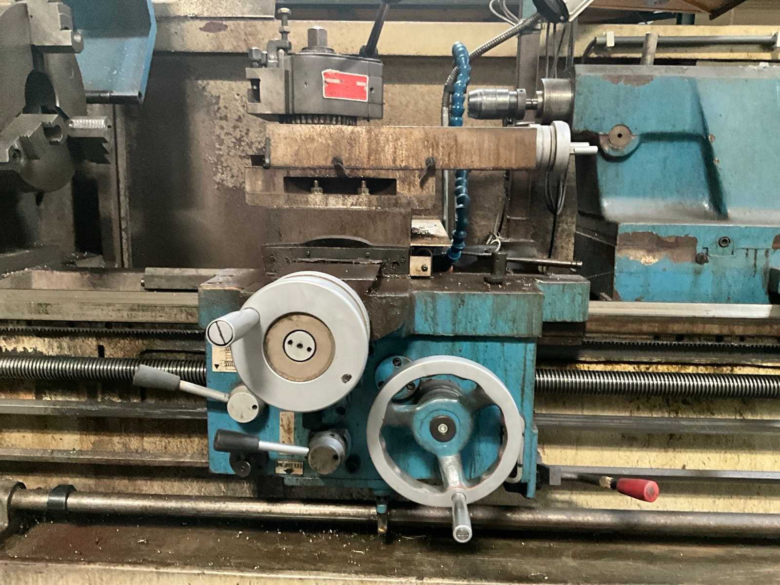 Met gereedschap en gereedschapskast Draaibank Steady Rest: 300 mm diameter. Middendiameter: 320 mm Merk: Yunnan Type: CY-660 x 2000GB Draai: 660mm Holle spil Ø: 82mm Aantal snelheden: 3 Snelheid van n =: 6rpm Snelheid tot n =: 1200rpm Besturing, merk, type: Newall DP700 Aansluiting: 400V Afmeting l: 4100mm Afmeting b: 1200mm Afmeting h: 2100mm