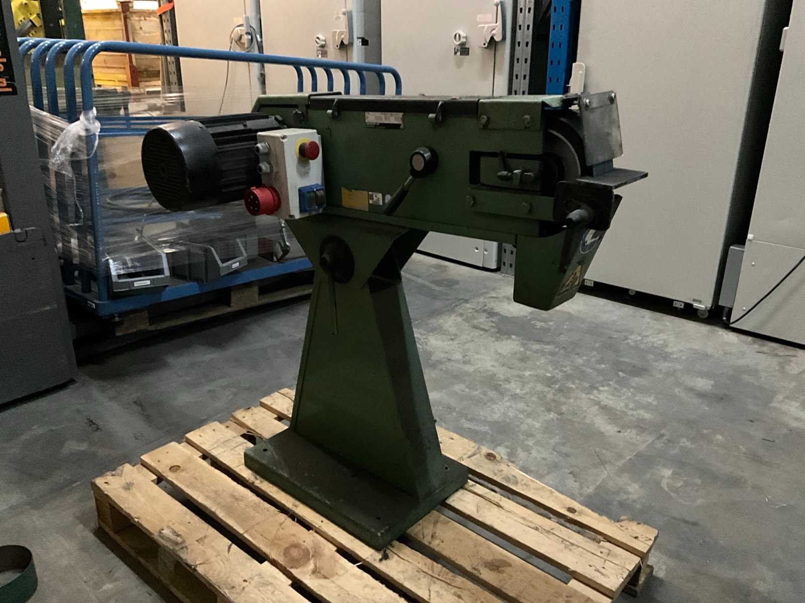 Merk: KEF Type: BSH 20-75 Werkbreedte: 75mm Schuurband afm. l: 2000mm Schuurband afm. b: 75mm Aansluiting: 400V Afmeting l: 1100mm Afmeting b: 500mm Afmeting h: 1000mm