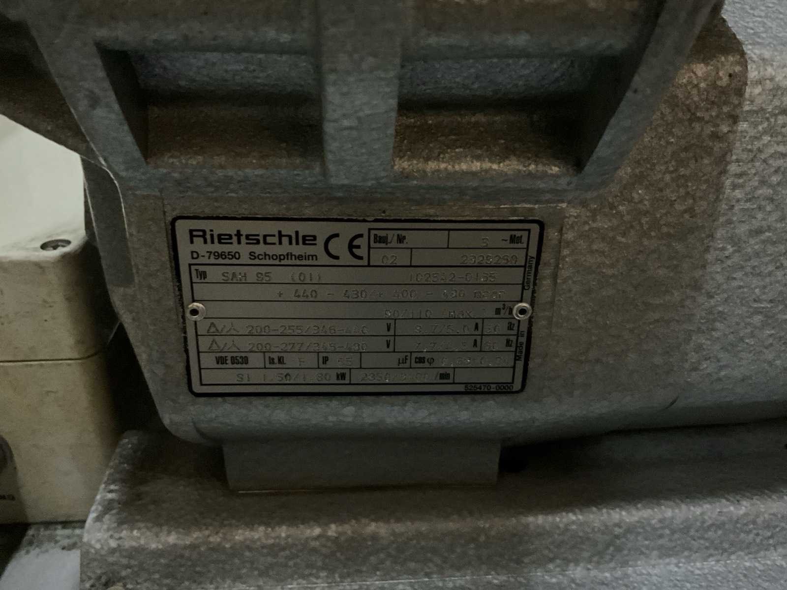 Merk: Rietschle Bora Type: SAM 95 Vermogen: 1.5kW Nominale capaciteit: 110m³/hr Aansluiting: 400V Totale afmeting L: 900mm Totale afmeting Breedte: 400mm Totale afmeting Hoogte: 800mm
