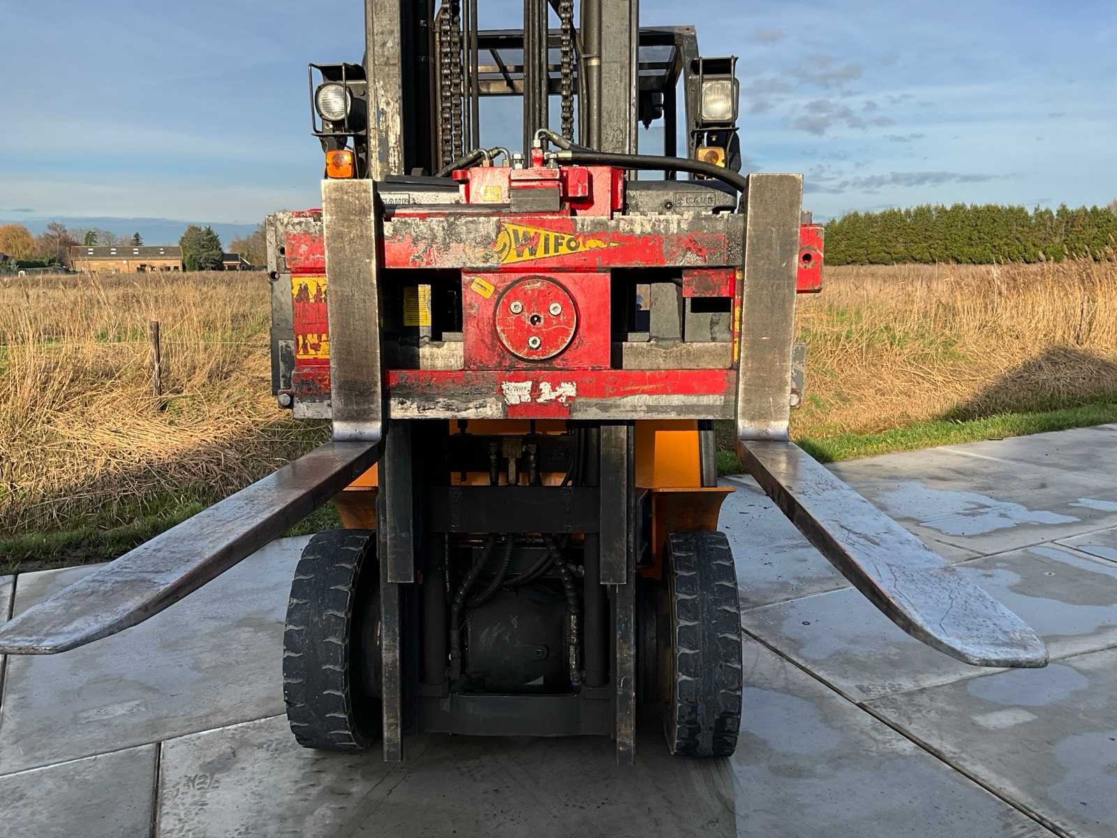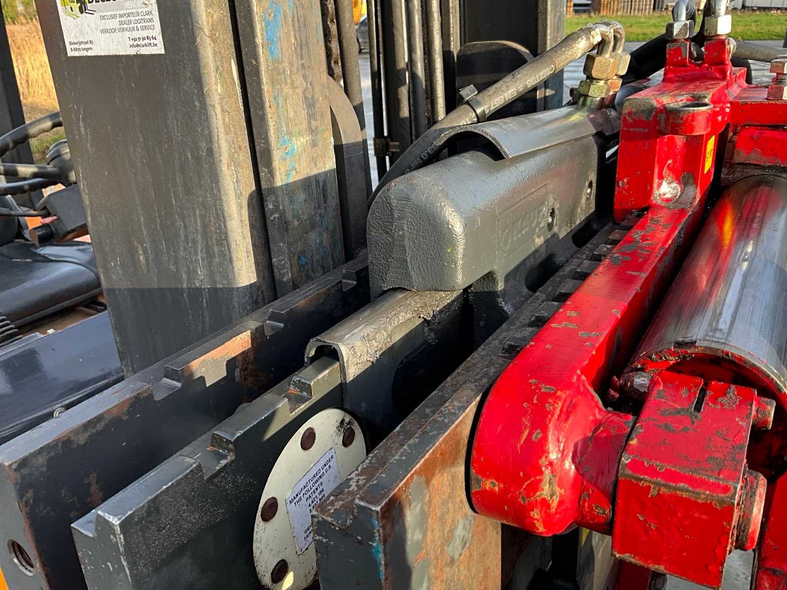 Waaronder: Wifo Rotator Vorken - 2500 kg Kaup 2T151P2 Zijschakeling - 2500 kg Moba BNR 20 GA Weegsysteem Merk: Clark Type: CMP-20L Brandstof: LPG Mast: Duplex Soort band: Volrubberbanden Aantal wielen: 4 Side-shift: true Roterend vorkenbord: true Duplex mast: true Hefvermogen: 2000kg Lepellengte: 1100mm Max. hefhoogte: 4000mm Hefhoogte: 4000mm Vol rubber banden: true Totale afmeting L: 3650mm Totale afmeting Breedte: 1120mm Totale afmeting Hoogte: 2600mm LPG: true