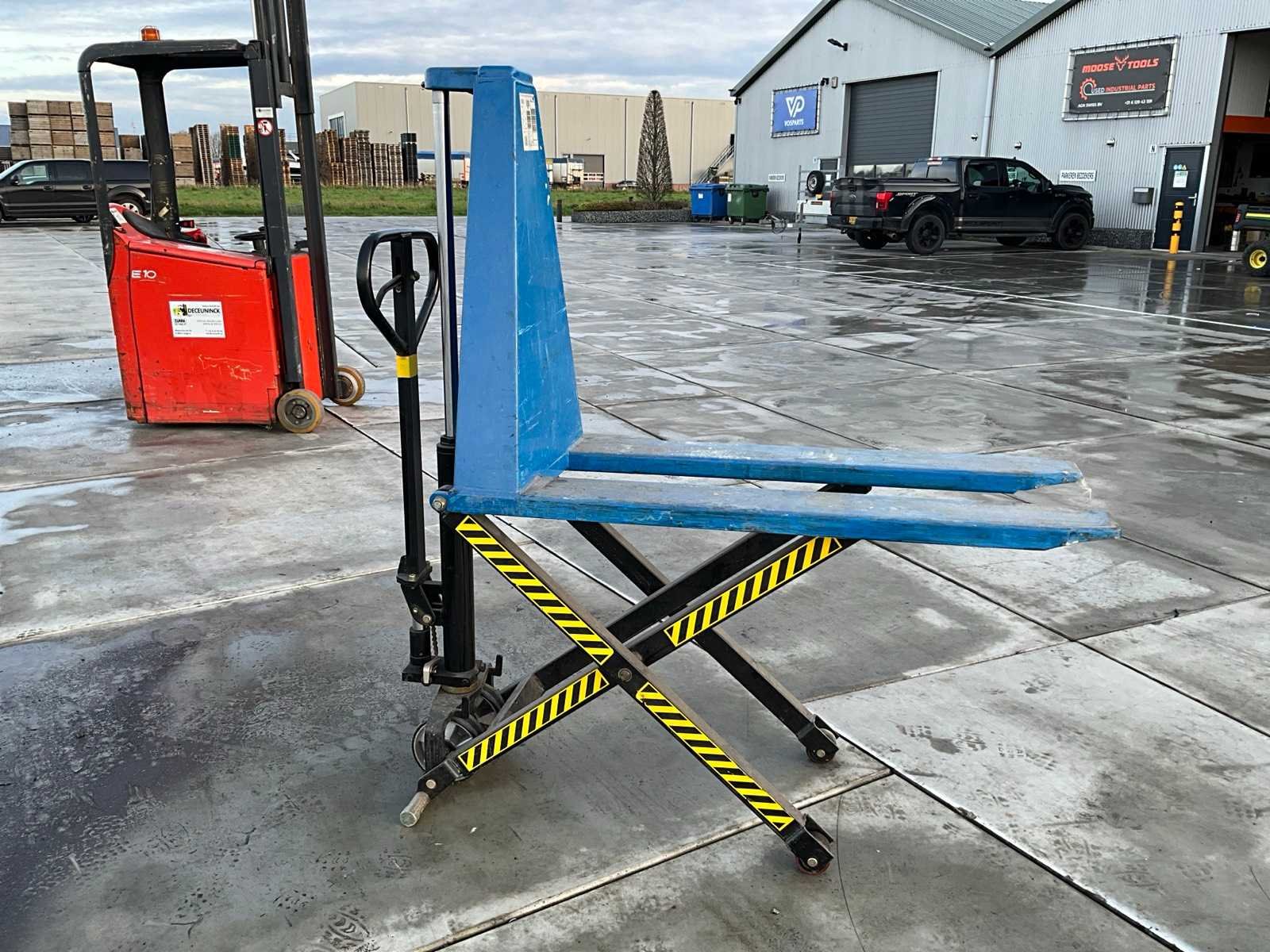 Merk: Transpalette Grande Levee Type: High Lift Pallet Truck Hoogheffer: true Hefvermogen: 1000kg Hefhoogte: 800mm Lepellengte: 1150mm Totale afmeting L: 1500mm Totale afmeting Breedte: 550mm Totale afmeting Hoogte: 1300mm