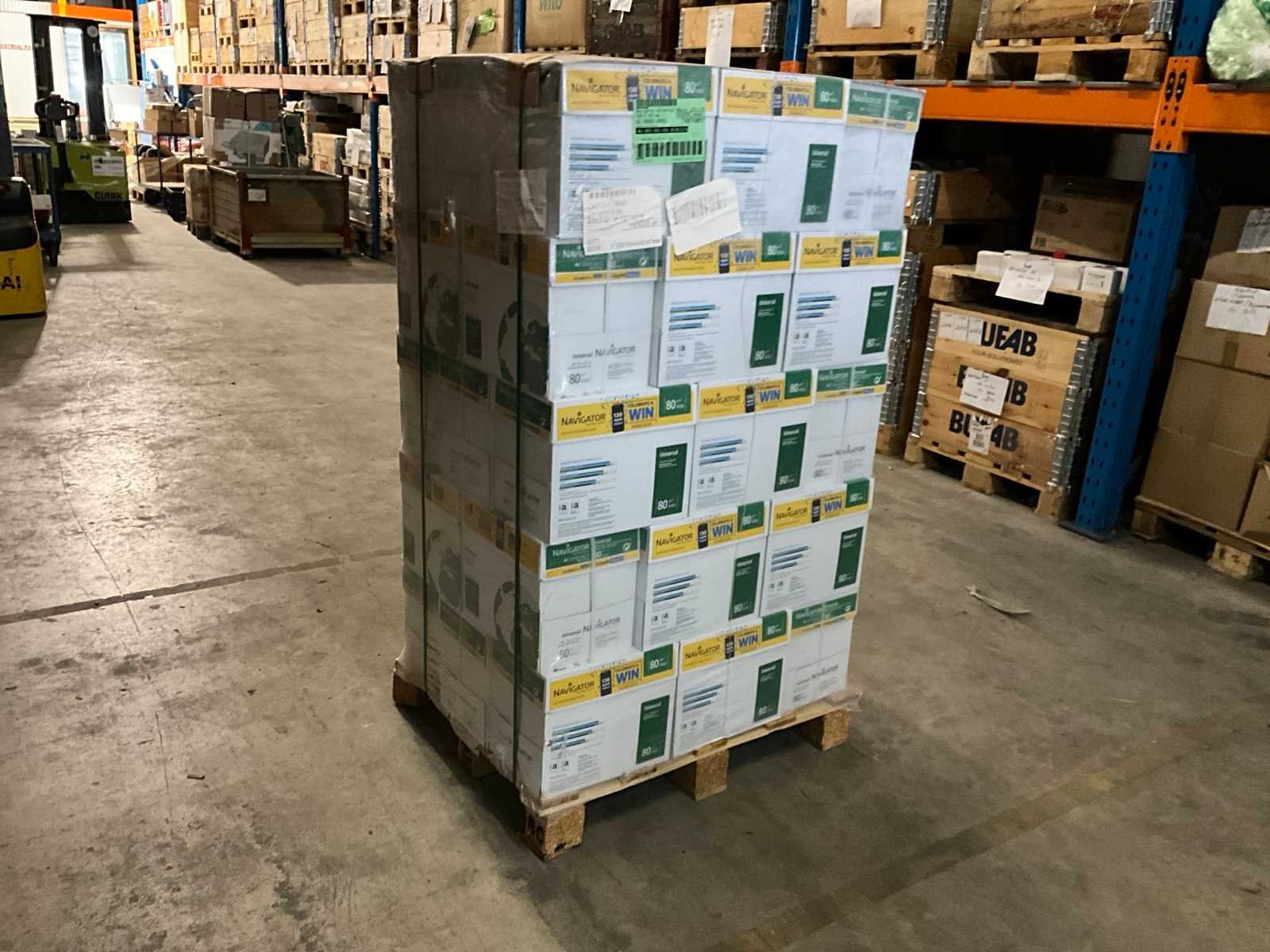 Pallet: 40 dozen 2500 vellen per doos Merk: Navigator Model: A4 Product type: A4 Printpapier Kleur: WIT Lengte: 840 Breedte: 660 Hoogte: 1350 Materiaal: Paper