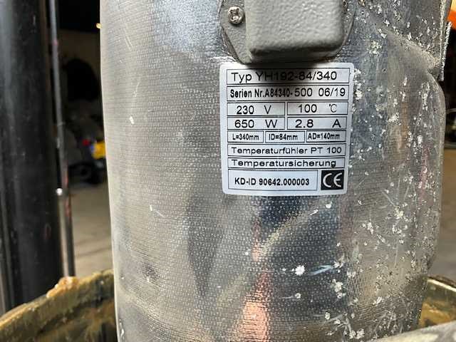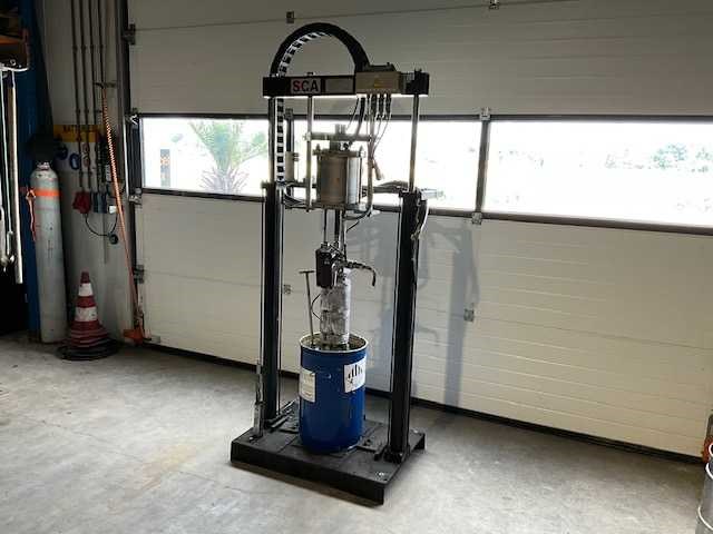 Met verwarmingselement Materiaaldruk Inlaat 6 bar Merk: SCA Type: PPW57-200/ 50P8Z-E Capaciteit.: 350bar Aansluiting: 230V Eigen gewicht: 125kg Totale afmeting L: 900mm Totale afmeting Breedte: 640mm Totale afmeting Hoogte: 2100mm