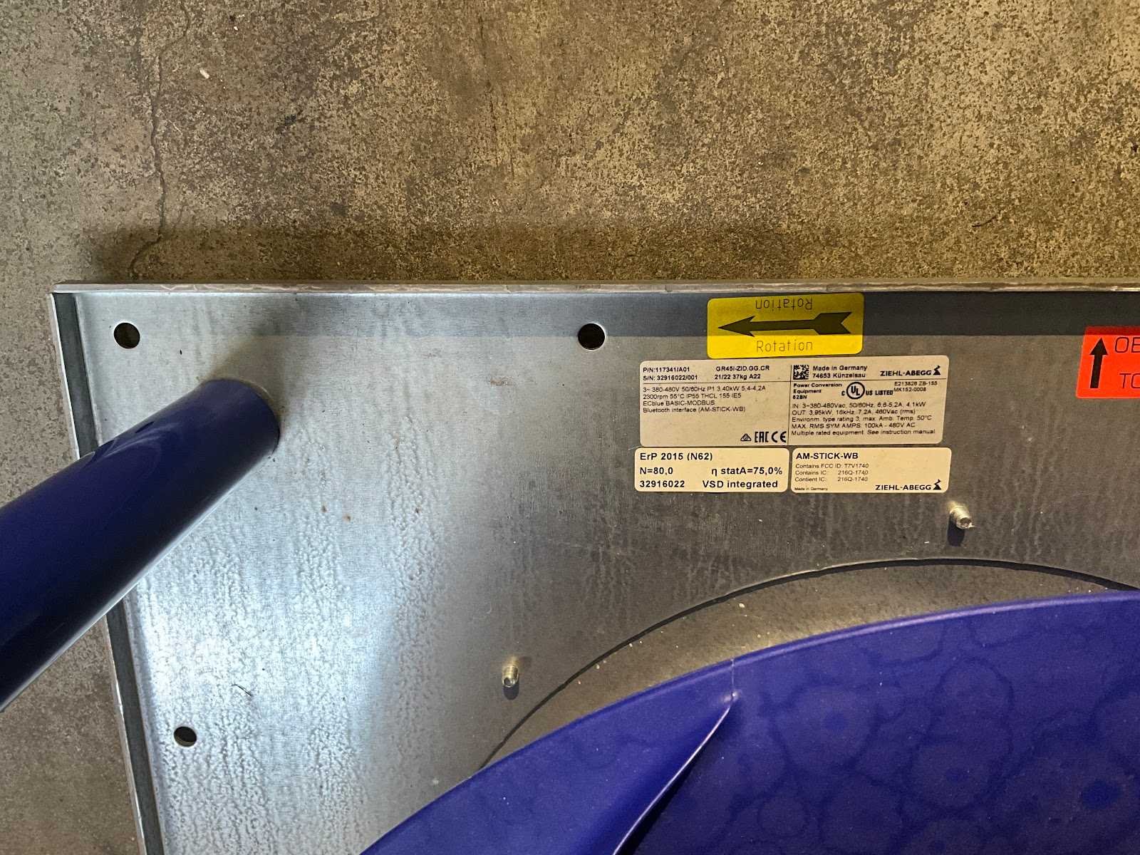 4,1 KW. 380 V 600x600x500 MM 35 kg Merk: Ziehl-Abegg Type: GR45i.zid.gg.cr